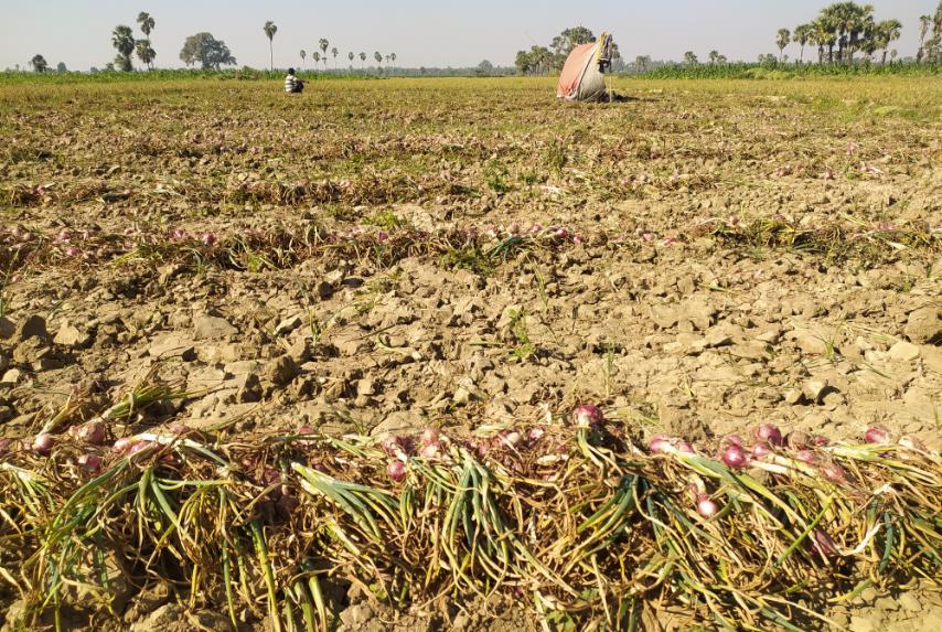 မန္တလေးတိုင်းဒေသကြီး ညောင်ဦးမြို့နယ် ဥပြန်စိုက်ကြက်သွန်နီခေါ် ဇော်မွှားကြက်သွန်နီ စိုက်ပျိုးတောင်သူများ တူးဖော်ရောင်းချချိန် ကြက်သွန်နီတစ်ပိသာ ၄၅၀ ကျပ်သာ ရောင်းချနေရ ကြောင်း ညောင်ဦးမြို့နယ် ကြအိုကျေးရွာ ဥပြန်ကြက်သွန်နီစိုက်တောင်သူ ဦးမောင်ဌေး ထံက သိရသည်။