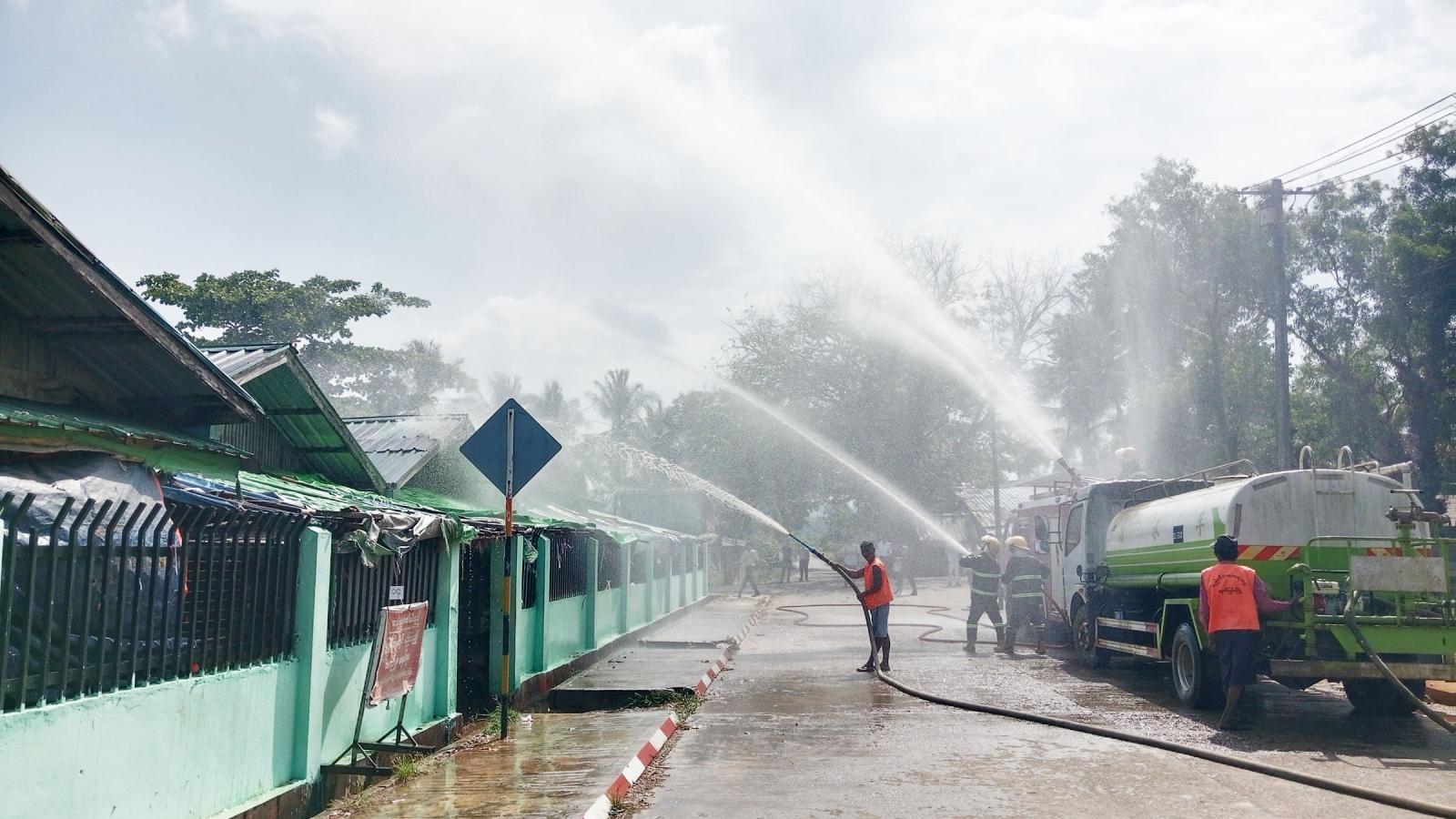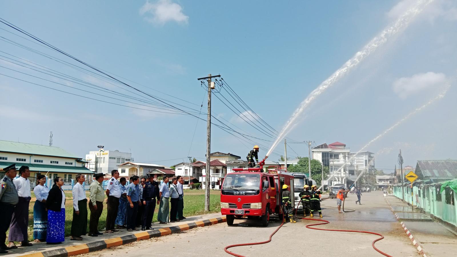 ယင်းနောက် မြို့နယ်မီးသတ်တပ်ဖွဲ့ဝင်များ၊ စည်ပင်သာယာရေးအဖွဲ့ဝင်များ၊ မြို့မဈေးကော်မတီအဖွဲ့ဝင်များနှင့် ပူးပေါင်းအဖွဲ့များက မီးငြှိမ်းသတ်ယာဉ်၊ စည်ပင်သာယာရေး ရေသယ်ယာဉ်တို့ဖြင့် မီးဘေးကြိုတင်ကာကွယ်ရေး ဇာတ်တိုက်လေ့ကျင့်ခြင်း ဆောင်ရွက်ခဲ့သည်။