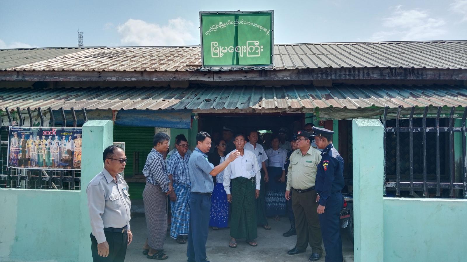 မြို့နယ်စီမံခန့်ခွဲရေးနှင့်အုပ်ချုပ်ရေးကော်မတီဥက္ကဋ္ဌ ဦးညီညီနှင့်အဖွဲ့ဝင်များ၊ မြို့နယ်မီးသတ်ဦးစီးမှူး၊ မြို့နယ်စည်ပင်သာယာရေးအဖွဲ့အမှုဆောင်အရာရှိနှင့်တာဝန်ရှိသူများ၊ မြို့မဈေးအတွင်း မီးဘေးကြိုတင်ကာကွယ်ရေးဆောင်ရွက်ထားရှိမှုအခြေအနေများ၊ ရေသိုလှောင်ကန်၊ မီးငြှိမ်းသတ်ဆေးဘူးများစနစ်တကျဆောင်ရွက်ထားရှိမှုများကို ကြည့်ရှုစစ်ဆေးပြီး ဈေးကော်မတီအဖွဲ့ဝင်များအား လိုအပ်သည်များ လမ်းညွှန်မှာကြားသည်။