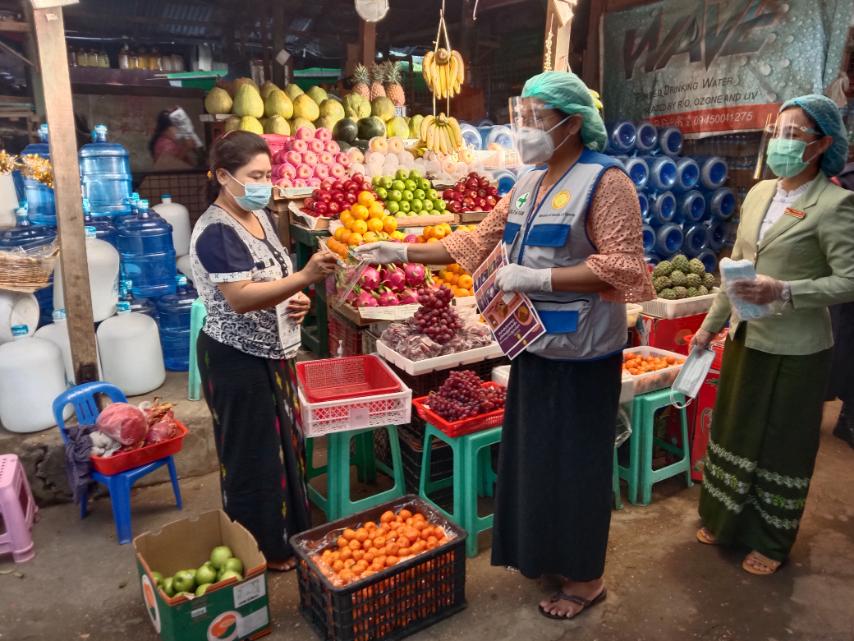 ရန်ကုန်အနောက်ပိုင်းခရိုင်၊ ကမာရွတ်မြို့နယ်တွင် ကိုဗစ်-၁၉ ရောဂါ ကူးစက်ပြန့်နှံ့မှု ကြိုတင် ကာကွယ်ထိန်းချုပ်ရေးအတွက် အမှတ် ၁၀ ရပ်ကွက်ရှိ သံလွင်စျေးနှင့် လူစည်ကားရာနေရာများ တွင် နှာခေါင်းစည်း Mask Campaign ဆောင်ရွက်ခြင်းကို ယနေ့ နံနက် ၇ နာရီ ၃၀ မိနစ်အချိန်က ဆောင်ရွက်ခဲ့ကြောင်း သိရသည်။