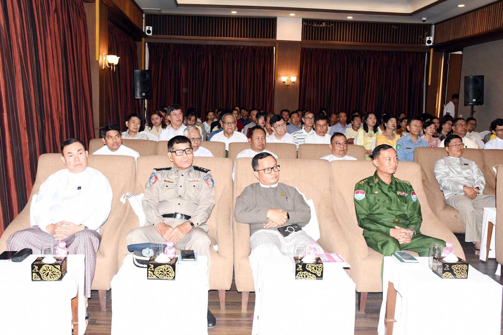 ဆက်လက်၍ တိုင်းဒေသကြီး ဝန်ကြီးများက တက်ရောက်လာသော စီးပွားရေးလုပ်ငန်းရှင်များအား ရင်းရင်းနှီးနှီး လိုက်လံနှုတ်ဆက်သည်။