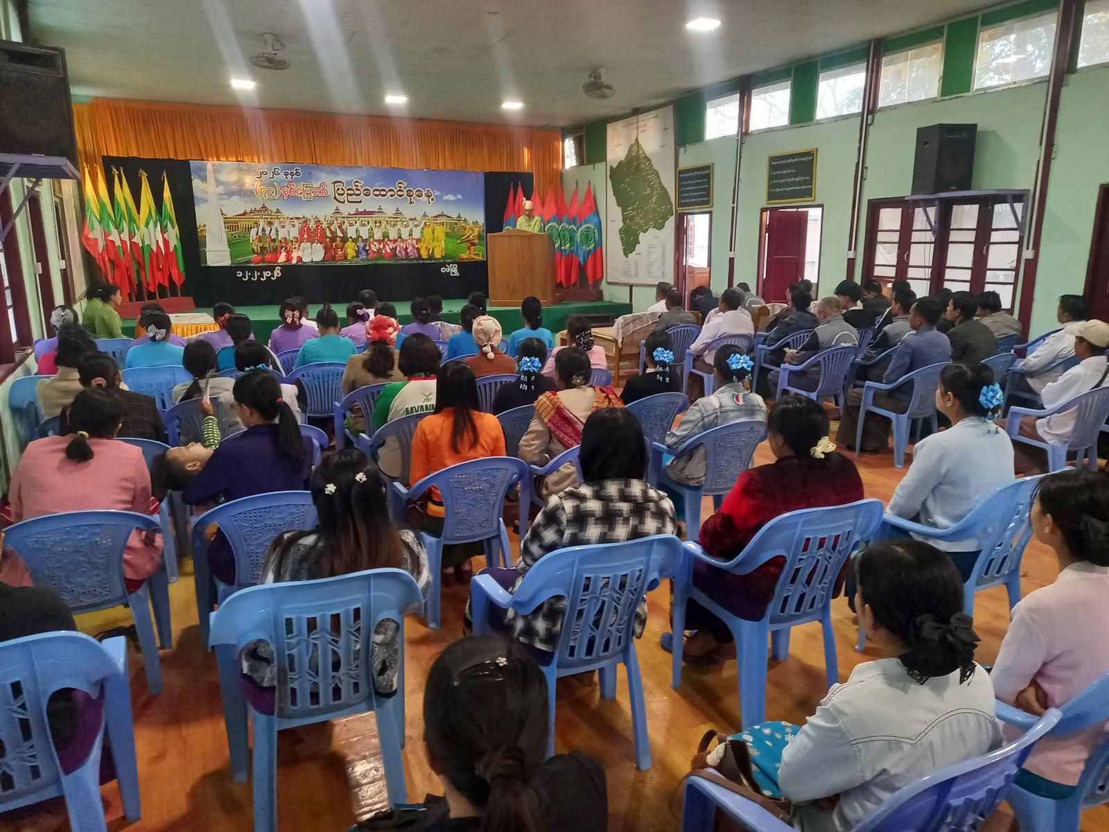 မကွေးတိုင်းဒေသကြီး မင်းဘူးခရိုင် ငဖဲမြို့နယ်တွင် ၂၀၂၆ ခုနှစ် (၇၉)နှစ်မြောက် ပြည်ထောင်စုနေ့ သဝဏ်လွှာဖတ်ပွဲ အခမ်းအနားကို ယနေ့နံနက် ၇ နာရီအချိန်က မြို့နယ်အထွေထွေအုပ်ချုပ်ရေး ဦးစီးဌာနရုံးအစည်းအဝေးခန်းမ၌ကျင်းပပြုလုပ်သည်။
