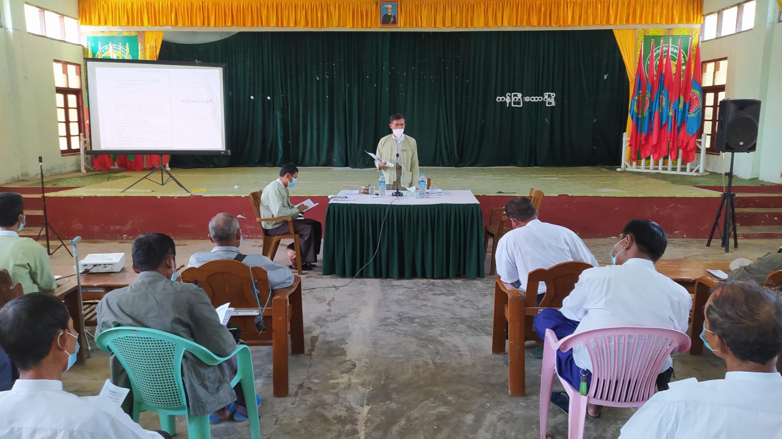 အခမ်းအနားတွင် မြို့နယ်အုပ်ချုပ်ရေးမှူး ဦးဝင်းမြင့်က ရပ်ကွက်/ကျေးရွာအုပ်စုအုပ်ချုပ်ရေးမှူး၊ ကျေးရွာတာဝန်ခံ၊ ရာအိမ်မှူး၊ ဆယ်အိမ်မှူးတို့တွင် ပြည့်စုံရမည့် အရည်အချင်းများ၊ ဥပဒေ၊ နည်းဥပဒေဆိုင်ရာများ၊ ရွေးချယ်ခြင်းလုပ်ငန်းဆိုင်ရာများ၊ ကြီးကြပ်ရေးအဖွဲ့ ဖွဲ့စည်းတာဝန်ပေးအပ်ခြင်းနှင့် ကြီးကြပ်ရေးအဖွဲ့၏ လုပ်ငန်းတာဝန်များ စသည်များကို ချပြရှင်းလင်း ဆွေးနွေးပြောကြားခဲ့သည်။
