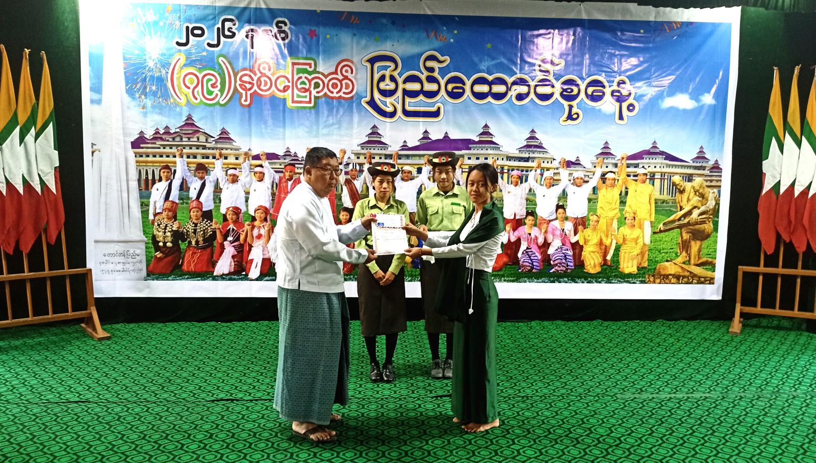 ယင်းနောက် (၇၉)နှစ်မြောက် ပြည်ထောင်စုနေ့အထိမ်းအမှတ် ပန်းချီ၊ စာစီစာကုံး၊ ကဗျာ၊ ဆောင်းပါးပြိုင်ပွဲ ဆုရကျောင်းသား၊ ကျောင်းသူများအား တာဝန်ရှိသူများက ဆုများချီးမြှင့်ပေးခဲ့ကြောင်း သိရသည်။