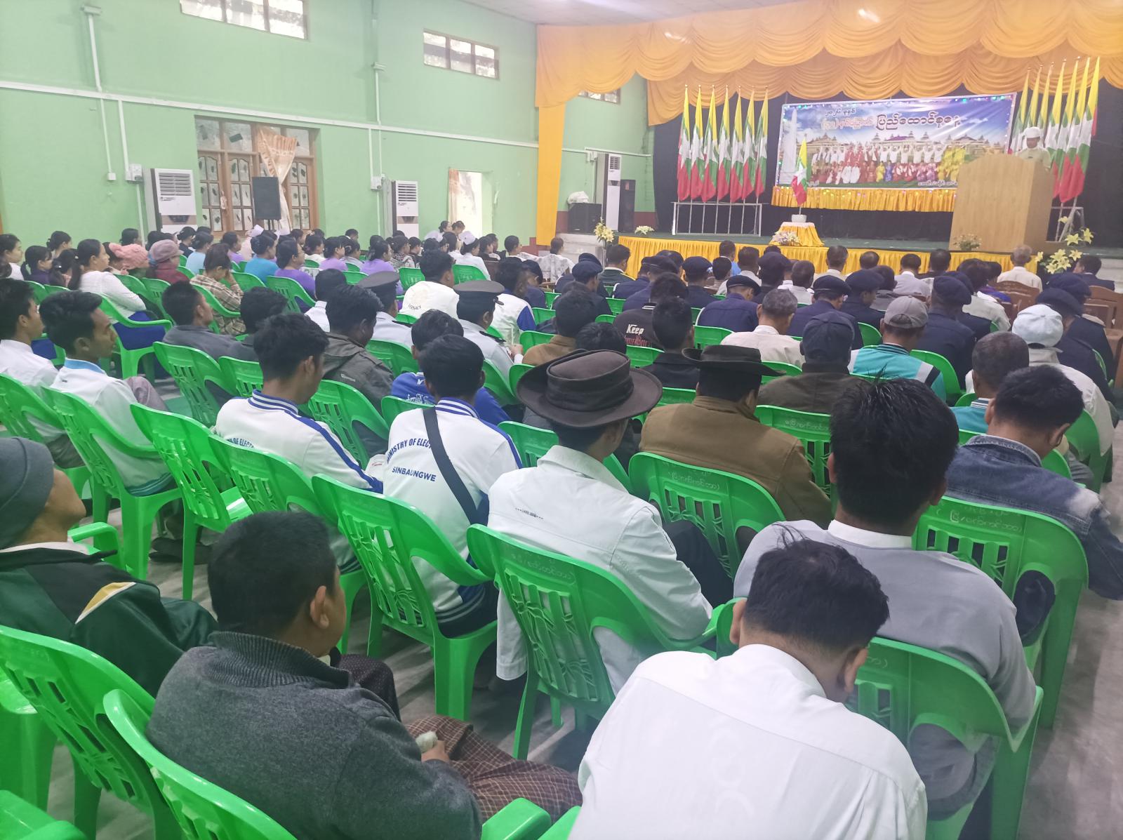 ဆက်လက်ပြီး အခမ်းအနားသို့ တက်ရောက်လာသော ဌာနဆိုင်ရာများနှင့် လူမှုရေးအသင်းအဖွဲ့များအား ပြန်ကြားရေးနှင့်ပြည်သူ့ဆက်ဆံရေးဦးစီးဌာန ဦးစီးအရာရှိနှင့် ဝန်ထမ်းများမှ (၇၉) နှစ်မြောက် ပြည်ထောင်စုနေ့အထိမ်းအမှတ် သတင်းစကားလက်ကမ်းစာစောင်များ ဝေငှခဲ့ကြောင်း သိရသည်။