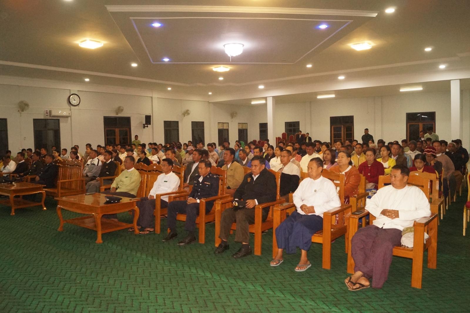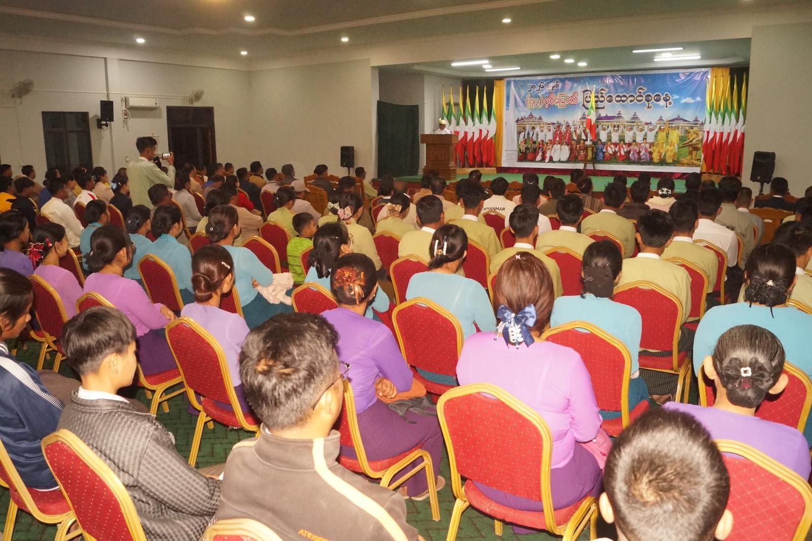 နံနက် ၆ နာရီတွင် ခရိုင်စုပေါင်းရုံး ရွှေဆည်မြိုင်ခန်းမ၌ သဝဏ်လွှာဖတ်ပွဲအခမ်းအနားကို ဆက်လက်ကျင်းပရာ (၇၉)နှစ်မြောက် ပြည်ထောင်စုနေ့အထိမ်းအမှတ် ပြည်ထောင်စုသမ္မတမြန်မာနိုင်ငံတော် ယာယီသမ္မတ နိုင်ငံတော်လုံခြုံရေးနှင့်အေးချမ်းသာယာရေးကော်မရှင်ဥက္ကဋ္ဌ ဗိုလ်ချုပ်မှူးကြီး သတိုးမဟာသရေစည်သူ သတိုးသီရိသုဓမ္မမင်းအောင်လှိုင်ထံမှ ပေးပို့သောသဝဏ်လွှာအား ခရိုင်စီမံခန့်ခွဲရေးနှင့်အုပ်ချုပ်ရေးကော်မတီဥက္ကဋ္ဌ ဦးကိုကိုလှိုင်ကဖတ်ကြားသည်။ ယင်းနောက် ပြည်ထောင်စုနေ့အထိမ်းအမှတ် အလွတ်တန်းပိုက်ကျော်ခြင်းပြိုင်ပွဲ၌ ပထမဆုရ မြို့မ(၁)အသင်းအား ခရိုင်စီမံခန့်ခွဲရေးနှင့်အုပ်ချုပ်ရေးကော်မတီဥက္ကဋ္ဌ ဦးကိုကိုလှိုင်ကလည်းကောင်း၊ ဒုတိယဆုရ ခရိုင်ထွေ/အုပ်အသင်းအား ခရိုင်စီမံခန့်ခွဲရေးနှင့်အုပ်ချုပ်ရေးကော်မတီ အတွင်းရေးမှူး ဒုတိယရဲမှူးကြီး သန်းကျော်ကလည်းကောင်း ချီးမြှင့်ပေးအပ်ခဲ့ကြောင်း သိရသည်။
