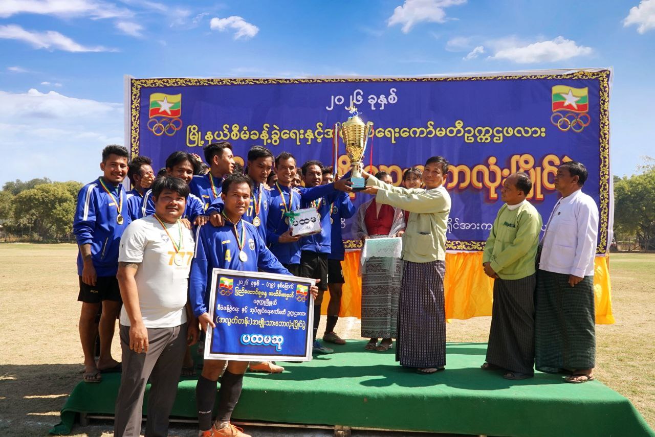 မကွေးတိုင်းဒေသကြီး၊ ပခုက္ကူမြို့၌ (၇၉)နှစ်မြောက် ပြည်ထောင်စုနေ့အထိမ်းအမှတ် မြို့နယ်စီမံခန့်ခွဲရေးနှင့်အုပ်ချုပ်ရေးကော်မတီဥက္ကဋ္ဌဖလား အလွတ်တန်းအမျိုးသားဘောလုံးပြိုင်ပွဲ ဗိုလ်လုပွဲနှင့်ဆုချီးမြှင့်ပွဲကို ယမန်နေ့ နံနက်၈နာရီအချိန်က ခရိုင်အားကစားကွင်း၌ ကျင်းပ ပြုလုပ်သည်။