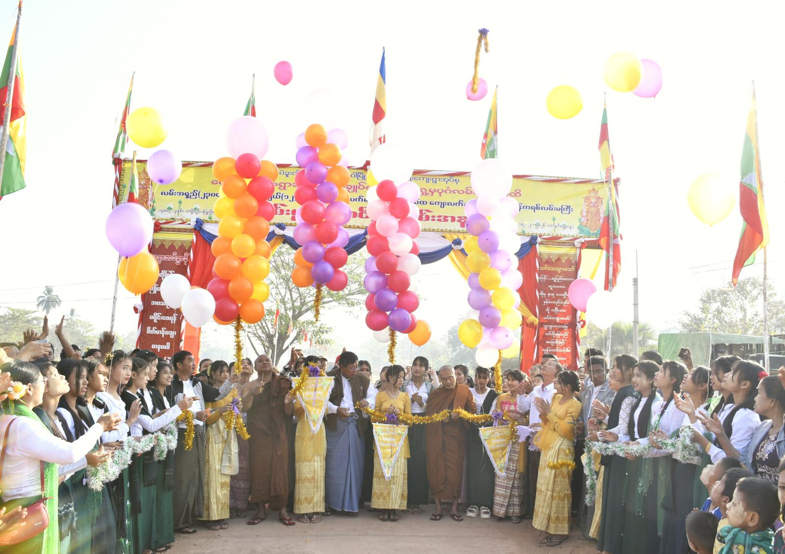 ဦးစွာ ရန်ကုန်မြို့၊ မြပုလဲကျောင်းဆရာတော် ဘဒ္ဒန္တဒေါက်တာအရှင်မာမက၊ ကွေ့ကြီးကျေးရွာ အုပ်စုကျောင်းတိုက်ဆရာတော် ဘဒ္ဒန္တသောပါက၊ ကျေးရွာအုပ်ချုပ်ရေးမှူး ဦးတင်မောင်ထွေး၊ လမ်းအကျိုးတော်ဆောင်အဖွဲ့ ဥက္ကဋ္ဌ ဦးမြင့်အောင်နှင့် တာဝန်ရှိသူများက မင်္ဂလာ ကွန်ဂရစ် လမ်းသစ်အား ဖဲကြိုးဖြတ်ဖွင့်လှစ်ပေးသည်။