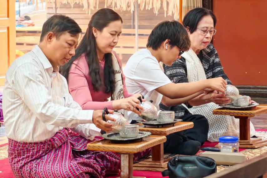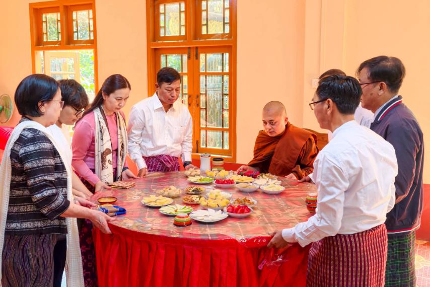 ထို့နောက် ဆရာတော်အရှင်သူမြတ်ထံမှ ခရိုင်စီမံခန့်ခွဲရေးနှင့်အုပ်ချုပ်ရေးကော်မတီဥက္ကဋ္ဌ ဦးမြင့်နိုင်၊ ဇနီးနန်းစုစုစံနှင့် မိသားစုဝင်များ၊ ခရိုင်စီမံခန့်ခွဲရေးနှင့်အုပ်ချုပ်ရေးကော်မတီအဖွဲ့ဝင်များ၊ မြို့နယ်စီမံခန့်ခွဲရေးနှင့်အုပ်ချုပ်ရေးကော်မတီဥက္ကဋ္ဌ ဦးအောင်စိုးမိုးနှင့် အဖွဲ့ဝင်များ၊ ပခုက္ကူတက္ကသိုလ် ခေတ္တပါမောက္ခချုပ် ဒေါက်တာတင်ထွန်းအောင်၊ ခရိုင်သာသနာရေးဦးစီးမှူး ဦးကျင်ရွှေနှင့်ဝန်ထမ်းများ၊ ခရိုင်/မြို့နယ်ဌာနဆိုင်ရာ တာဝန်ရှိသူများနှင့် ဝန်ထမ်းများက ငါးပါးသီလ ခံယူဆောက်တည်ခြင်း၊ ဘုရားဂုဏ်တော်၊ တရားဂုဏ်တော်၊ သံဃာ့ဂုဏ်တော်များနှင့် အန္တရာယ်ကင်းပရိတ်တရားတော်များ နာယူခြင်း၊ လှူဖွယ်ဝတ္ထု ပစ္စည်းများ ဆက်ကပ်လှူဒါန်းခြင်းများ ဆောင်ရွက်ကြပြီး လှူဒါန်းမှုအစုစုအတွက် ရေစက်သွန်းချ အမျှဝေကာ ဆရာတော်သံဃာတော်များနှင့် သီလရှင်များအား နေ့ဆွမ်းဆက်ကပ် လှူဒါန်းခဲ့ကြကြောင်း သိရသည်။
