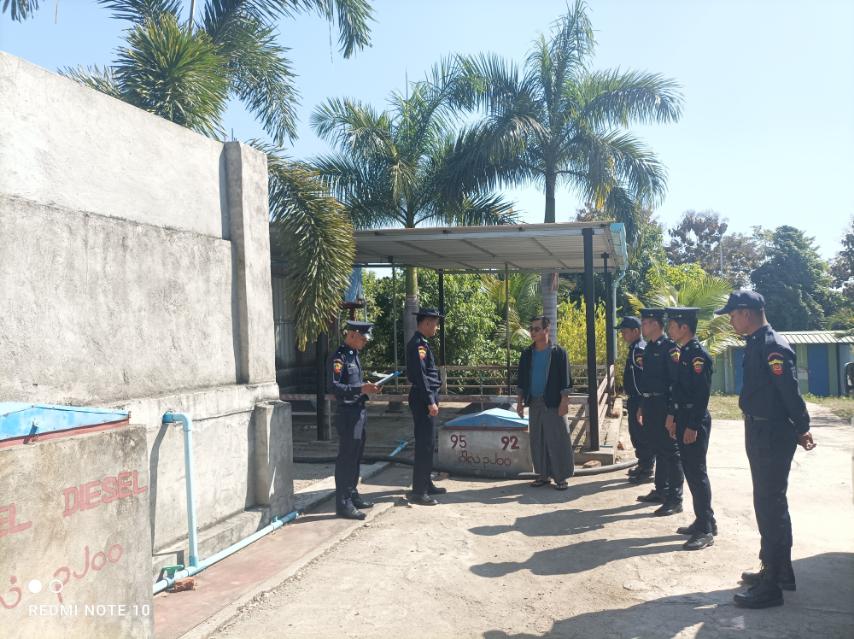 ထိုသို့ မီးဘေးလုံခြုံရေး စစ်ဆေးရာတွင် စက်သုံးဆီဆိုင်များတွင် ထားရှိသည့် မီးဘေးကြိုတင် ကာကွယ်ရေး ပစ္စည်းများဖြစ်သော အပေါ့စားမီးသတ်စက်၊ မီးသတ်ပိုက်လိပ်၊ ပိုက်ခေါင်း၊ Foam အမြုပ်ဆေးရည်များ၊ မီးသတ်ဆေးဘူးများနှင့် အုတ်ရေလှောင်ကန်များ ကောင်းမွန်ခြင်း ရှိ၊ မရှိ၊ အသင့်အနေထားဖြစ်စေရေး စစ်ဆေးခြင်းနှင့် ဆီဆိုင်ဝန်ထမ်းများ မီးသတ်ပစ္စည်း ကိရိယာများအား စနစ်တကျ ကိုင်တွယ်အသုံးပြုတတ်စေရေး လက်တွေ့လေ့ကျင့်ပြသခြင်းများ ဆောင်ရွက်ခဲ့ကြကြောင်း သိရသည်။