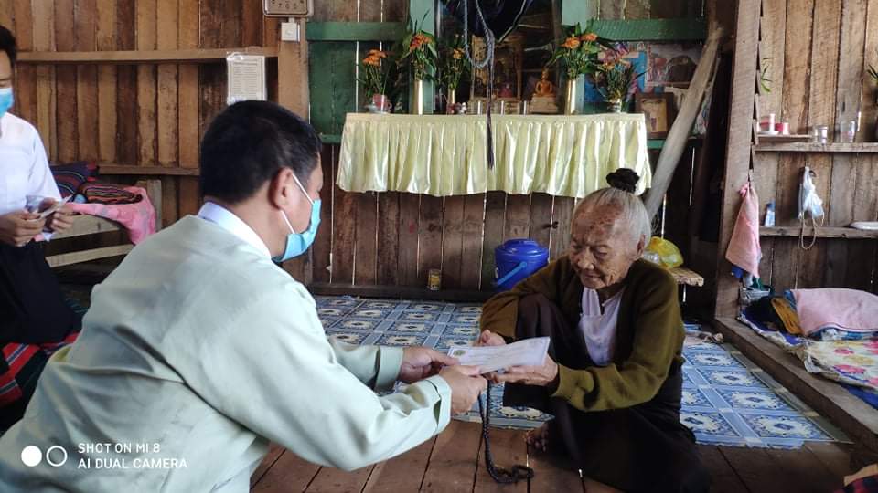 ကရင်ပြည်နယ်၊ လှိုင်းဘွဲမြို့နယ်တွင် လူမှုဝန်ထမ်းဦးစီးဌာနမှ ကိုဗစ်-၁၉ ကာလအတွင်း အသက်(၁၀၀)နှစ် အထက် သက်ကြီးဘိုးဘွားများအား အပိုဆောင်းထောက်ပံ့ငွေများ ပေးအပ်လျက်ရှိရာ ယမန်နေ့ နံနက်ပိုင်းက ကြာအင်းကျေးရွာ၌ ထောက်ပံ့ငွေများ ပေးအပ်ခဲ့ကြောင်း သိရှိရသည်။