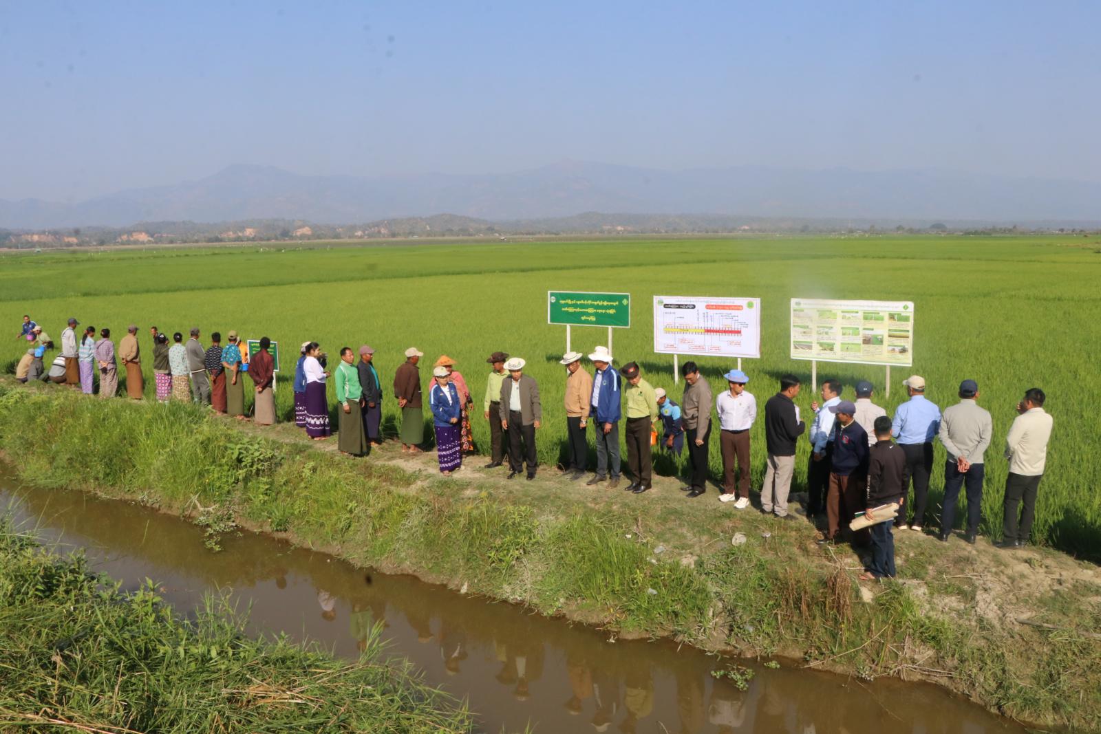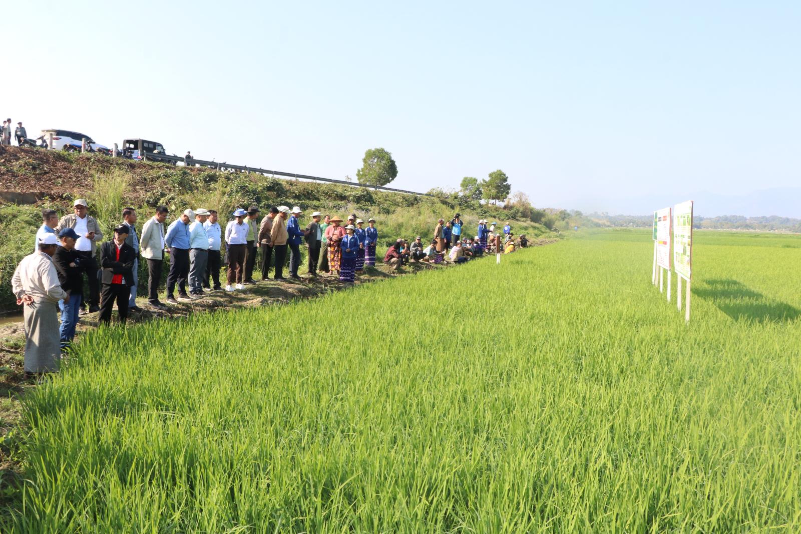 ဦးစွာ တိုင်းဒေသကြီး ဝန်ကြီးချုပ်နှင့် တိုင်းဒေသကြီး အစိုးရအဖွဲ့ဝင်များက ဒေသခံ တောင်သူများအတူ တောင်သူ ဒေါ်နော်ဆဲလား စိုက်ပျိုးထားရှိသည့် “အောင်နိင်တိုး” စပါး မျိုး ၁ ဧကအတွင်း ဓာတ်မြေဩဇာနှင့် သဘာဝမြေဩဇာ ရောနှောသုံးစွဲခြင်း ကွင်းသရုပ်ပြသမှုအား ကြည့်ရှုခဲ့ကြပြီး စိုက်ပျိုးရေးလုပ်ငန်းများနှင့် ပတ်သက်၍ လိုအပ်သည်များကို တာဝန်ရှိသူများနှင့် ဖြည့်ဆည်းပေါင်းစပ်ဆောင်ရွက်ပေးခဲ့သည်။