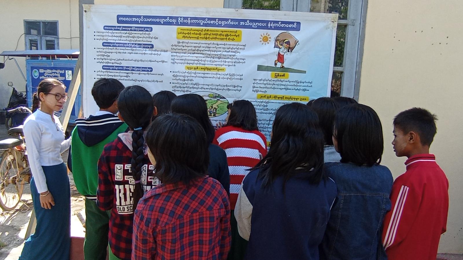 ပဲခူးတိုင်းဒေသကြီး၊ နတ်တလင်းခရိုင်၊ သဲကုန်းမြို့နယ် လူထုအခြေပြုဗဟိုဌာန (Community Centre)၌ ယနေ့နံနက်(၉) နာရီအချိန်က ကလေးအလုပ်သမားပပျောက်ရေး အသိပညာပေး နံရံကပ်စာစောင်ပြသခြင်း ဆောင်ရွက်ခဲ့သည်။