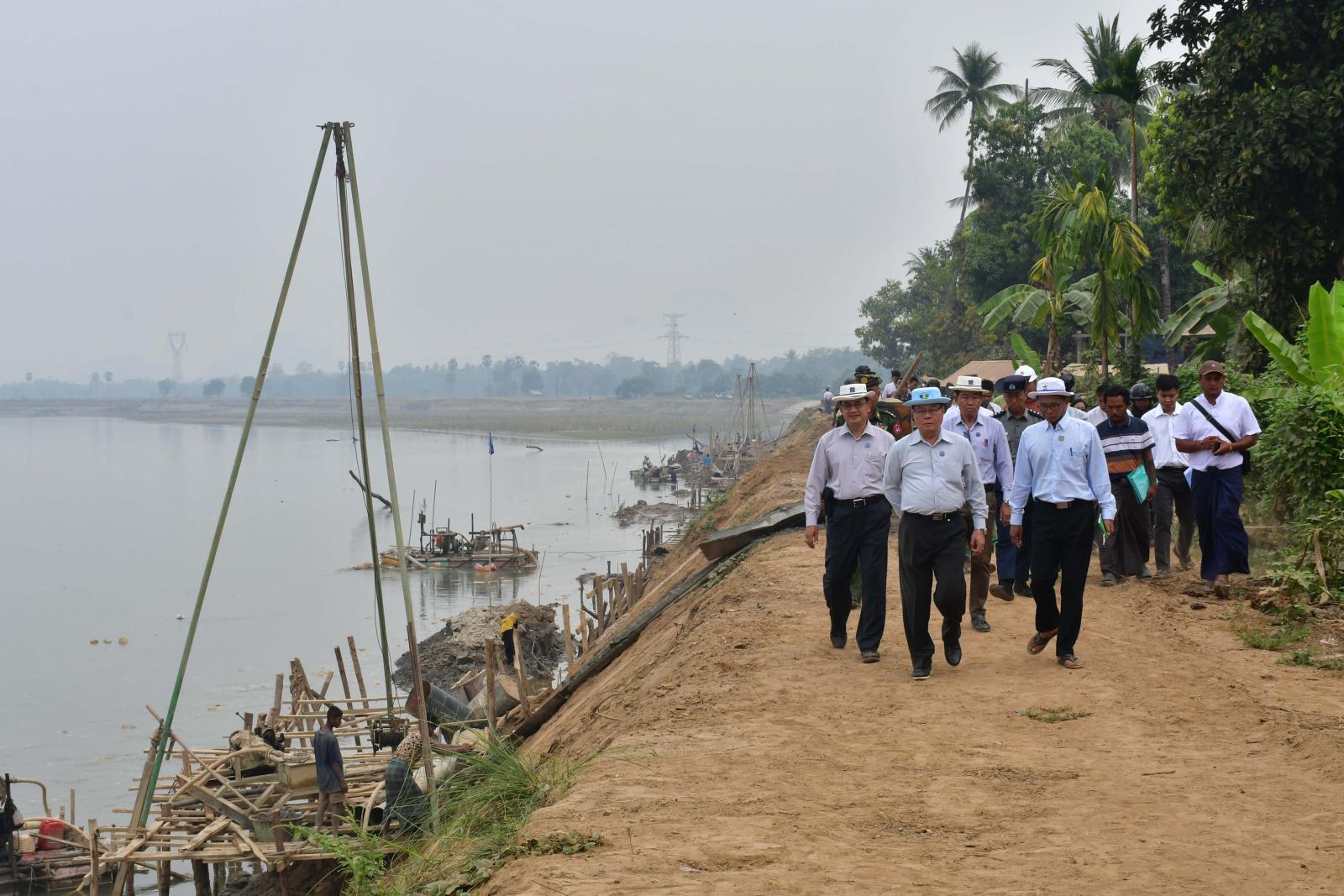 ယခင်နှစ်မိုးရာသီက ကရင်ပြည်နယ်အတွင်း သံလွင်မြစ်ရေသည် နှစ်ကြိမ်တိုင်တိုင်ထူးကဲစံချိန်တင်မြင့်တက်မှုကြောင့် မြစ်ကမ်းပါးပြိုကျမှုများဖြစ်ပွားခဲ့ပြီး ကမ်းပြိုကာကွယ်ရေးလုပ်ငန်းများဆောင်ရွက်လျက်ရှိရာ ပြည်နယ်ဝန်ကြီးချုပ် ဦးစောမြင့်ဦး၊ ပြည်နယ်ဝန်ကြီးများနှင့်တာဝန်ရှိသူများသည် ဖေဖော်ဝါရီ ၁၈ ရက် နံနက်ပိုင်းက ဘားအံမြို့နယ် ကော့လှိုက်ကျေးရွာရှိ သံလွင်မြစ်ကမ်းပြိုကာကွယ်ရေးလုပ်ငန်းဆောင်ရွက်နေမှုအား ကြည့်ရှုစစ်ဆေးသည်။
