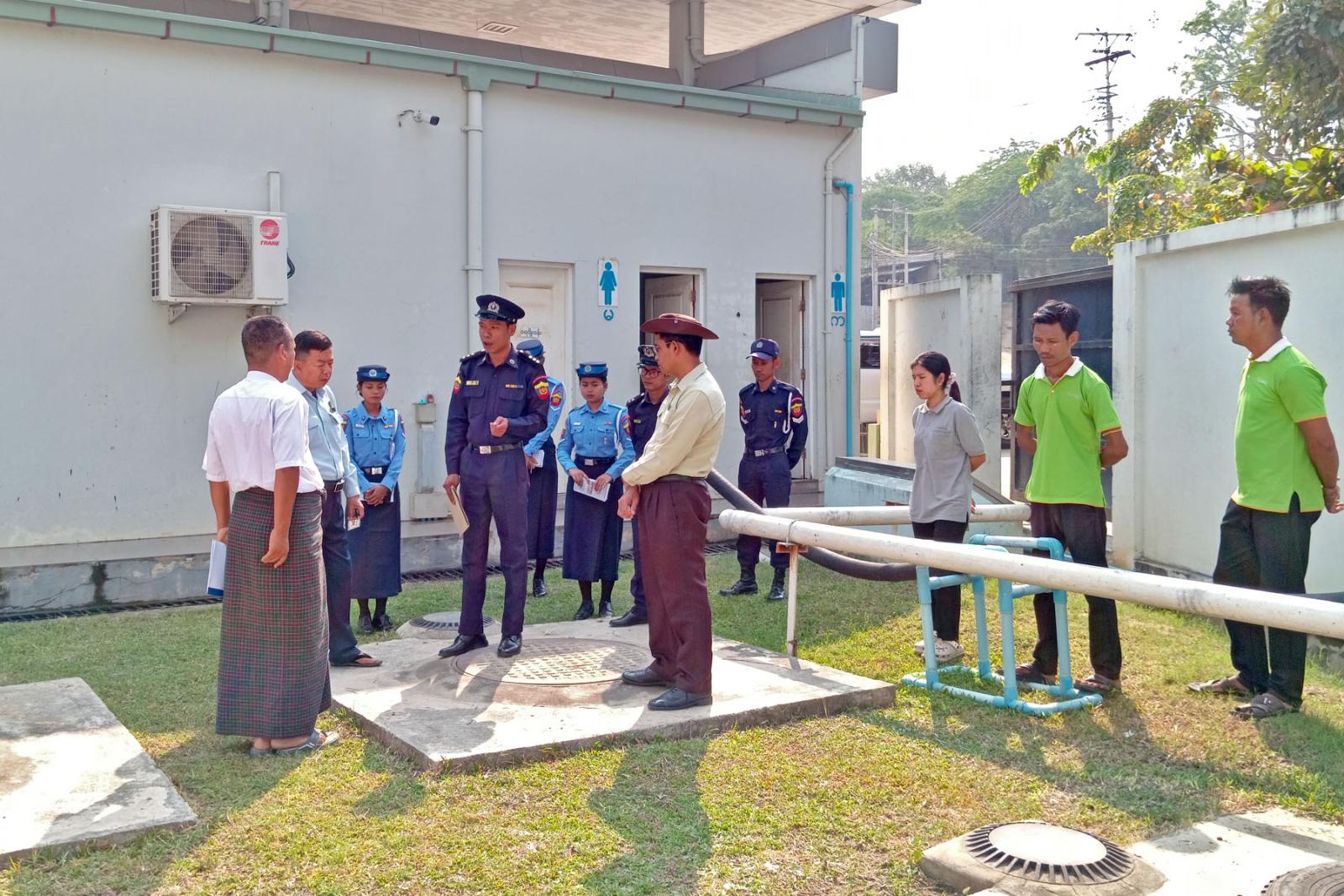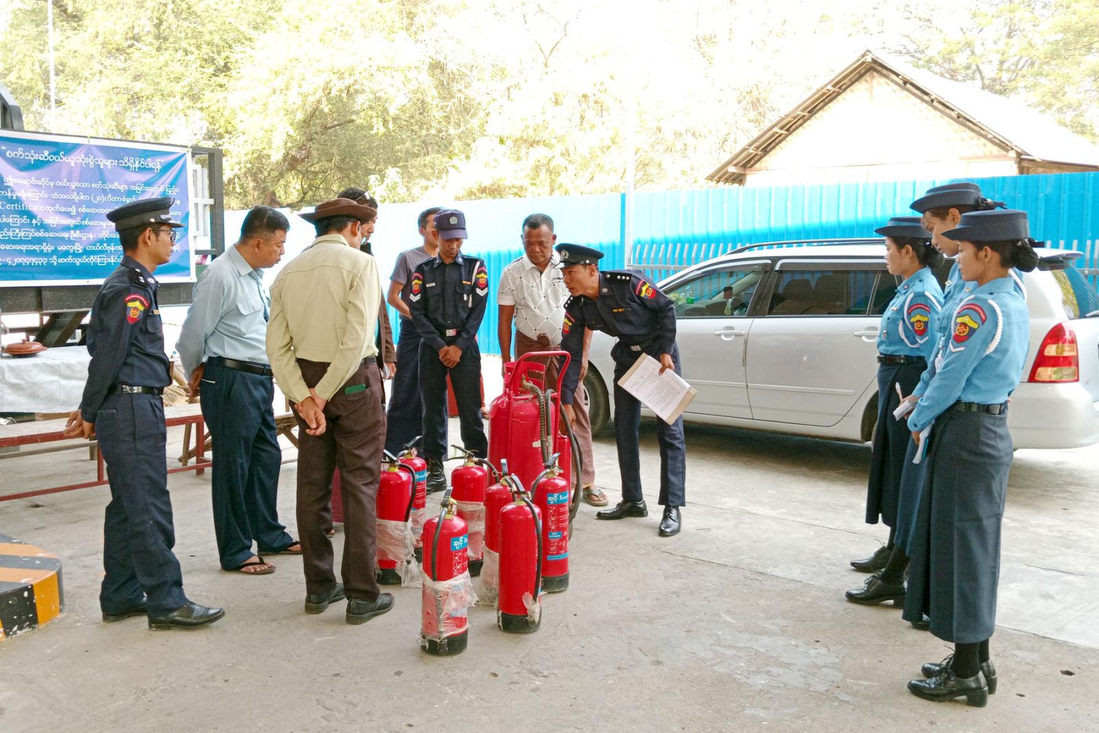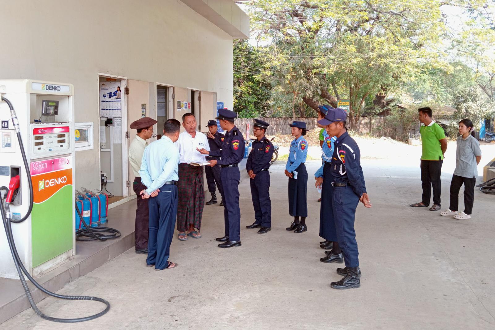 ထိုသို့စစ်ဆေးရာတွင် မြို့နယ်အထွေထွေအုပ်ချုပ်ရေးဦးစီးဌာန ဒုတိယမြို့နယ်အုပ်ချုပ်ရေးမှူး ဦးကျော်ညွန့်၊ မြို့နယ်စည်ပင်သာယာရေးအဖွဲ့ အမှုဆောင်အရာရှိ ဦးမျိုးနိုင်၊ မြို့နယ်မီးသတ်ဦးစီးမှူး ဦးကြည်စိုးဟန်နှင့်တပ်ဖွဲ့ဝင်များ၊ သက်ဆိုင်ရာဌာနတာဝန်ရှိသူများက စက်သုံးဆီအရောင်းဆိုင်ကြီးများဖြစ်သည့် DANKO၊ TAL၊ BOC၊ ရွှေရောင်းလင်းဆိုင်တို့တွင် ဆီရောင်းချမှု၊ ဆီသိုလှောင်မှု၊ ဆီလဲလှယ်မှုများနှင့် မီးဘေးလုံခြုံရေးကိစ္စရပ်များကို သတ်မှတ်ချက်များနှင့်အညီ ဆောင်ရွက်ထားမှုရှိ/မရှိ စစ်ဆေးပြီး ဆိုင်တာဝန်ခံနှင့် ဝန်ထမ်းများအား မီးဘေးလုံခြုံရေး ဆောင်ရန်ရှောင်ရန်အချက်များနှင့် မီးသတ်ဆေးဘူးကိုင်တွယ်အသုံးပြုနည်းများကို အသိပညာပေးကာ လက်ကမ်းစာစောင်များ ဖြန့်ဝေပေးခဲ့ကြောင်း သိရသည်။