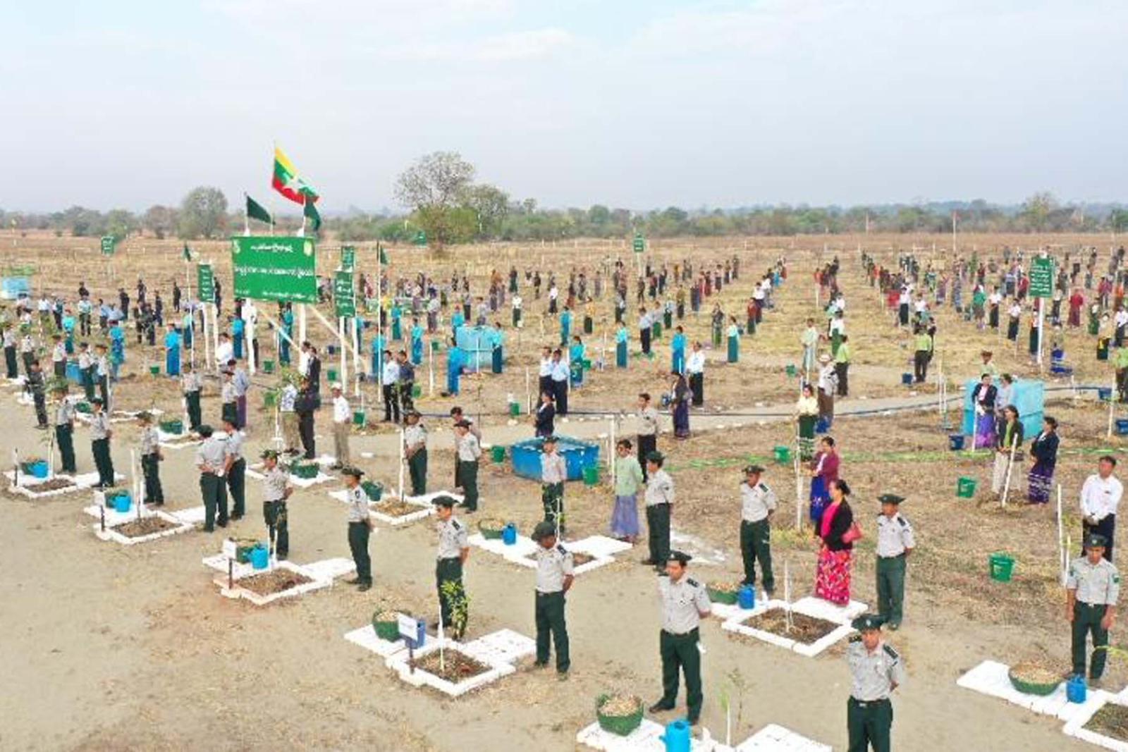 မကွေးတိုင်းဒေသကြီး၊ မင်းဘူးခရိုင်၊ မင်းဘူး(စကု)မြို့နယ်၌ အပူပိုင်းဒေသ (၁၃) ခရိုင် စိမ်းလန်းစိုပြည်ရေး လူထုလှုပ်ရှားမှုအသွင်ဖြင့် မိုးရာသီက စုပေါင်းစိုက်ပျိုးခဲ့သော အပင်များအား ၂၀၂၆ ခုနှစ်၊ မိုးလွန်ကာလ စုပေါင်းသစ်ပင် ရေလောင်းပြုစုခြင်းအခမ်းအနားကို ယနေ့နံနက် ၈ နာရီအချိန်က မင်းဘူး-ပဒါန်း-အမ်းကားလမ်းဘေး ကုန်းသာကျေးရွာအနီးရှိ မိုင်တိုင်အမှတ် ၄ မိုင် ၇ ဖာလုံ၌ ကျင်းပရာ အခမ်းအနားသို့ တိုင်းဒေသကြီးဝန်ကြီးချုပ် ဦးတင့်လွင်၊ နယ်မြေခံတပ်နယ်မှ တပ်မတော်အရာရှိများ၊ တိုင်းဒေသကြီးအစိုးရအဖွဲဝင် ဝန်ကြီးများ၊ တိုင်းဒေသကြီး၊ ခရိုင်နှင့် မြို့နယ်အဆင့် ဌာနဆိုင်ရာတာဝန်ရှိသူများ၊ ဖိတ်ကြားထားသူများ၊ ကျောင်းသား၊ ကျောင်းသူများနှင့် ဒေသခံပြည်သူများ တက်ရောက်ခဲ့ကြသည်။