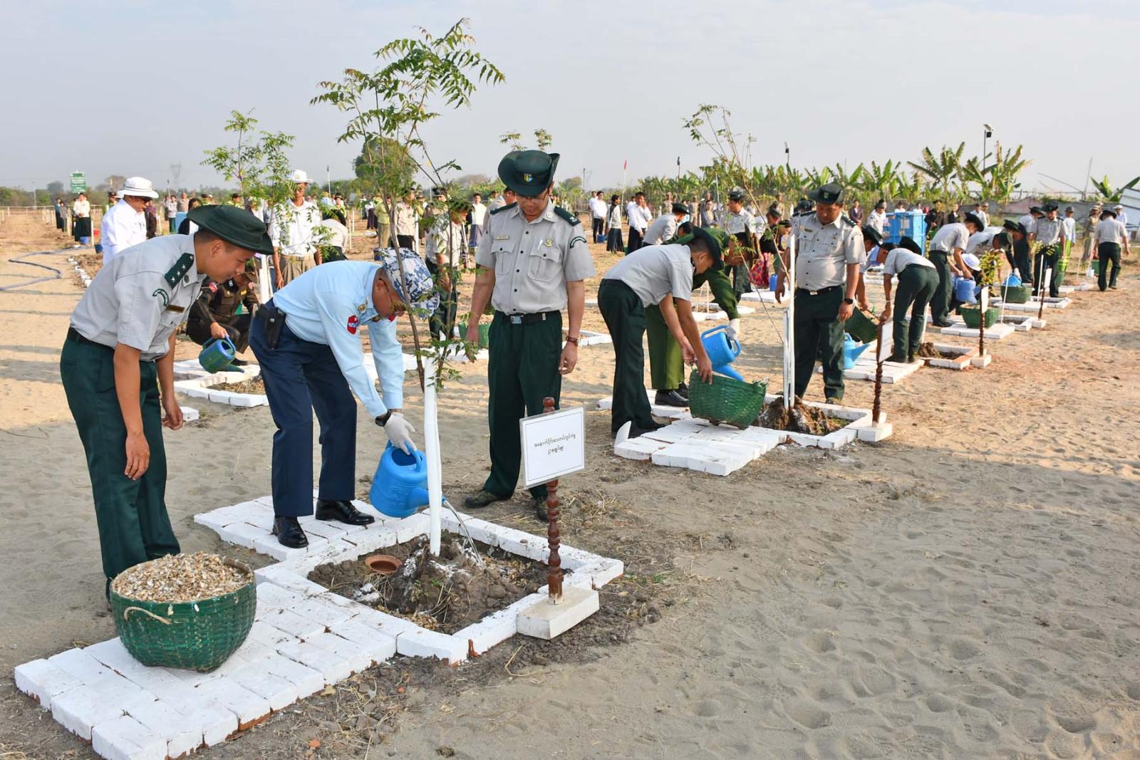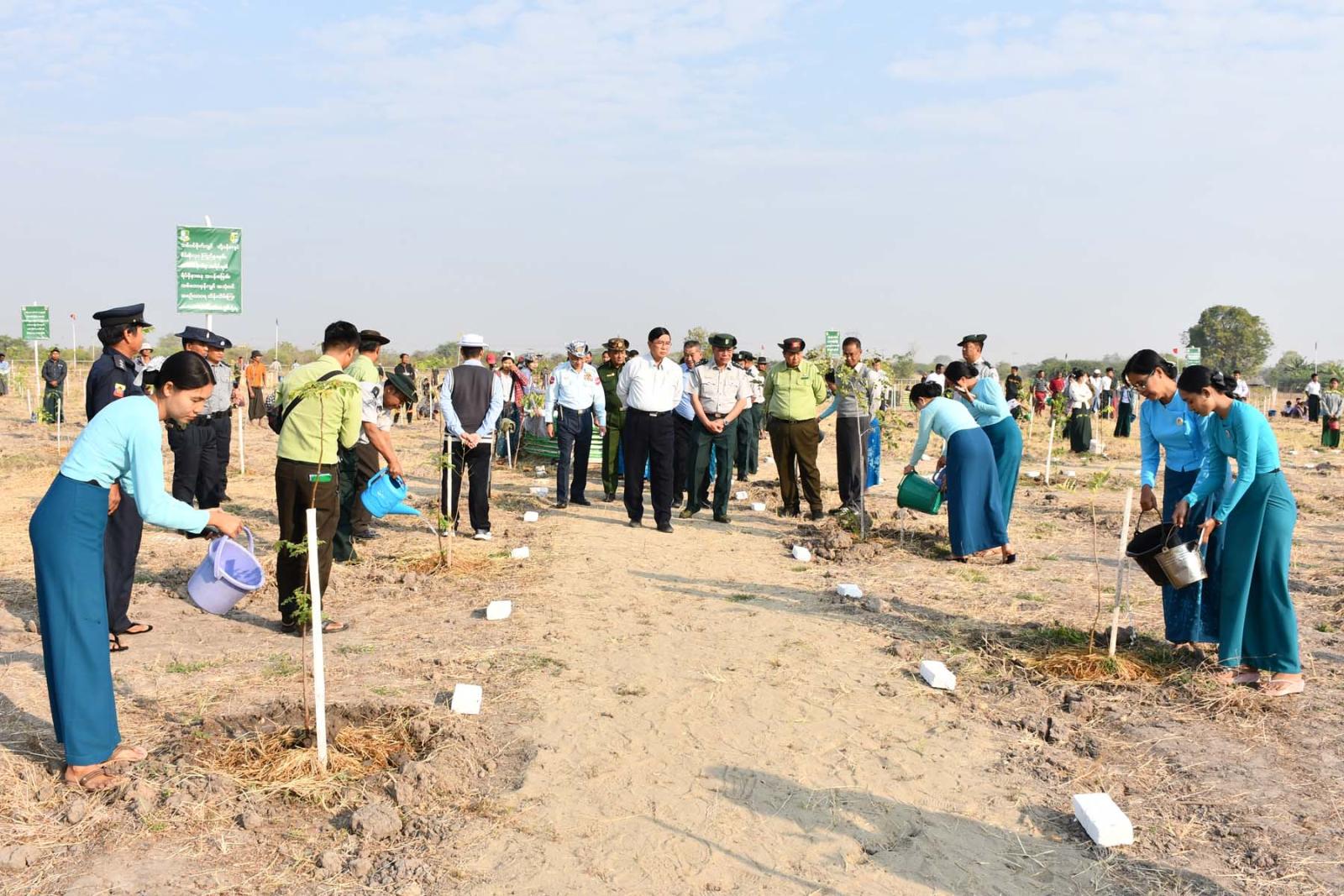 ဆက်လက်ပြီး တိုင်းဒေသကြီးဝန်ကြီးချုပ်နှင့် တာဝန်ရှိသူများက စိုက်ပျိုးထားသော အပင်များအား စုပေါင်းရေလောင်းခြင်း၊ မြေဩဇာကျွေးခြင်းနှင့် မြေပဲခွံဖုံးအုပ်ခြင်းများ ဆောင်ရွက်ပြီး တက်ရောက်လာကြသူများမှ စိုက်ပျိုးပြီးသစ်ပင်များအား တစ်ပျော်တစ်ပါး ရေလောင်း၊ ပေါင်းရှင်း၊ ပြုစုထိန်းသိမ်းနေမှုများကို လှည့်လည်ကြည့်ရှုအားပေးခဲ့သည်။