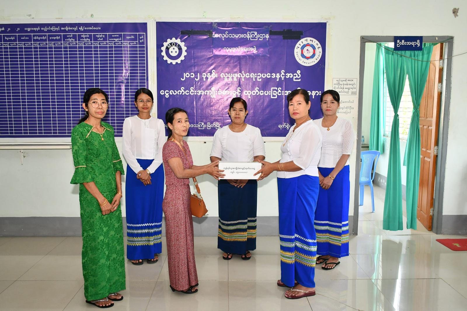အကျိုးခံစားခွင့်များ ပေးအပ်ရာတွင် လူမှုဖူလုံရေးရုံးမှ ဦးစီးအရာရှိ ဒေါ်မိုးမိုးခိုင်မှ အကျိုးခံစား ခွင့်များအကြောင်း ရှင်းလင်းပြောကြားပြီး လုပ်ငန်းခွင်တွင်း ထိခိုက်သေဆုံးခြင်းအတွက် ငွေလုံးငွေရင်း ကျပ်သိန်း (၁၅၀) အား သေဆုံးသူ၏ အစ်မဖြစ်သူ ဒေါ်ဇာဇာအောင်ထံသို့ လက်ဝယ် ပေးအပ်ကြောင်း သိရသည်။