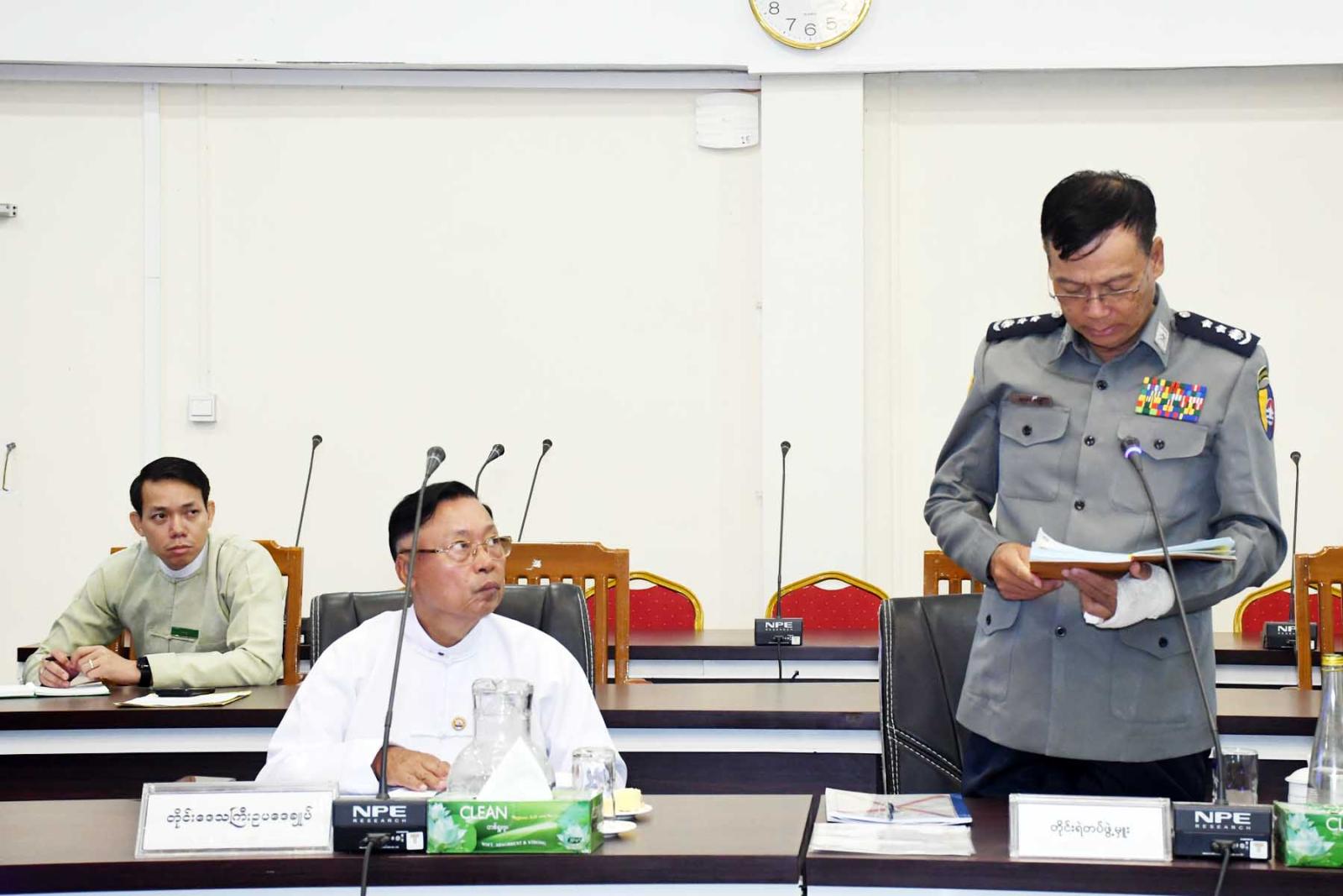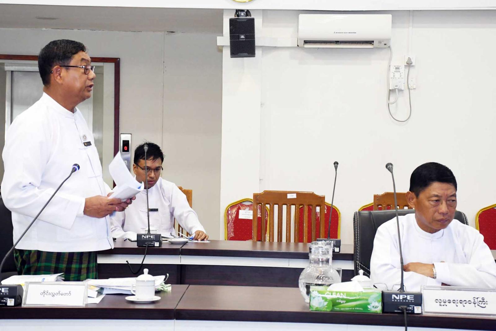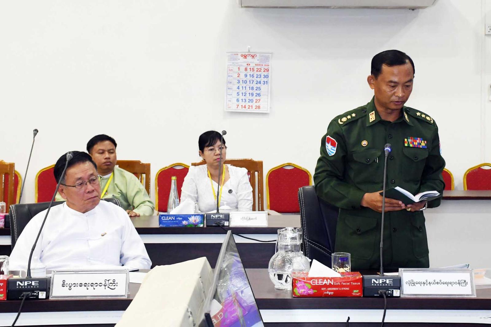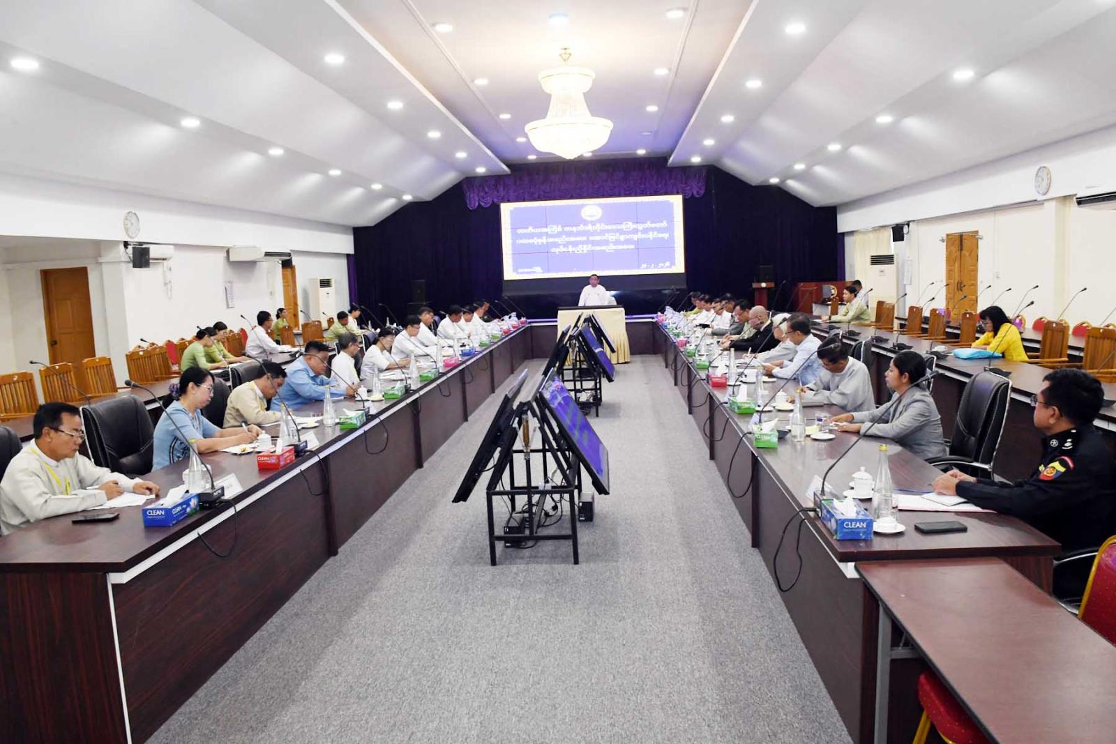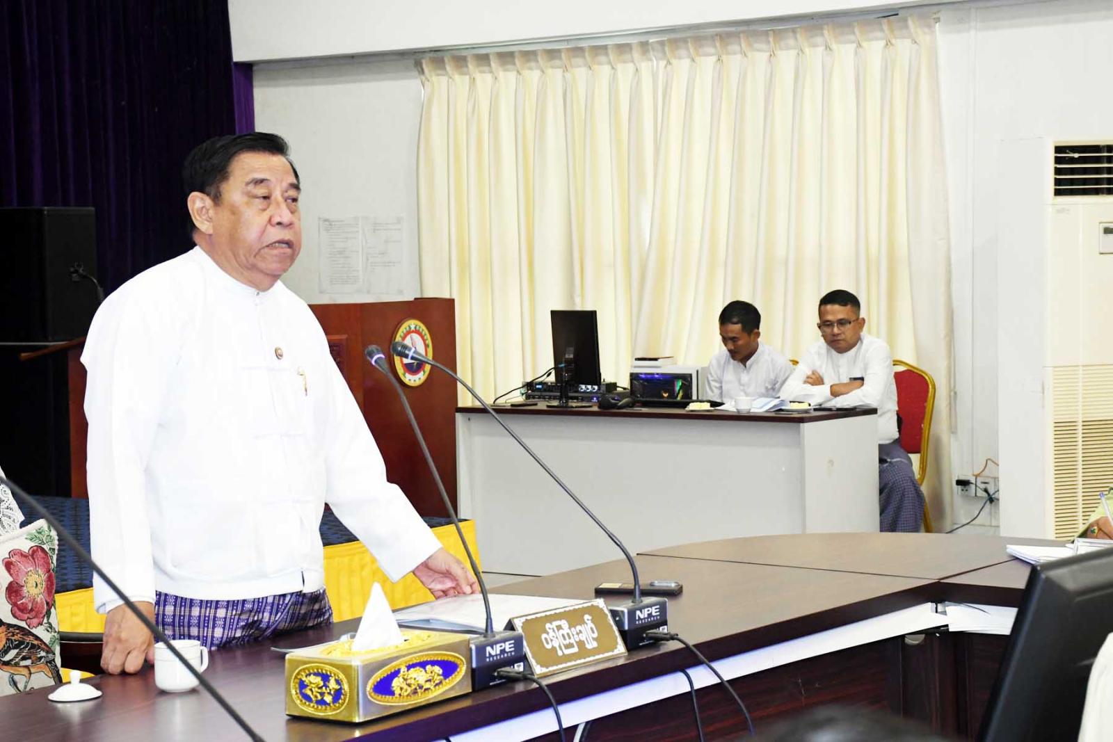 ထို့နောက်တတိယအကြိမ် တိုင်းဒေသကြီးလွှတ်တော်ပထမပုံမှန်အစည်းအဝေးအောင်မြင်စွာ ကျင်းပနိုင်ရေး ဗဟိုကော်မတီအတွင်းရေးမှူး တိုင်းဒေသကြီးလွှတ်တော်ရုံး ဒုတိယညွှန်ကြားရေးမှူးချုပ်ဦးမြင့်ဝေက လွှတ်တော်ရုံးအဆောက်အဦ ပရိဝုဏ်အတွင်း၊ အပြင် သန့်ရှင်းသပ်ရပ်စနစ်တကျရှိစေရေးဆောင်ရွက်ထားရှိမှုအခြေအနေ လွှတ်တော်ကိုယ်စားလှယ်များ နားနေဆောင်များ၌ အသင့်ပြင်ဆင်ဆောင်ရွက်ထားရှိမှုအခြေအနေ၊ လွှတ်တော်ရုံးအစည်းအဝေးခန်းမ၊ ဆွေးနွေးပွဲခန်းမ၊ ဧည့်ခန်းမ၊ နားနေခန်းများဆောင်ရွက်ထားရှိမှုအခြေအနေများ၊ ရုံးလုပ်ငန်းများနှင့်ရှေ့ဆောင်ရွက်မည့် လုပ်ငန်းများအား ရှင်းလင်းတင်ပြသည်။