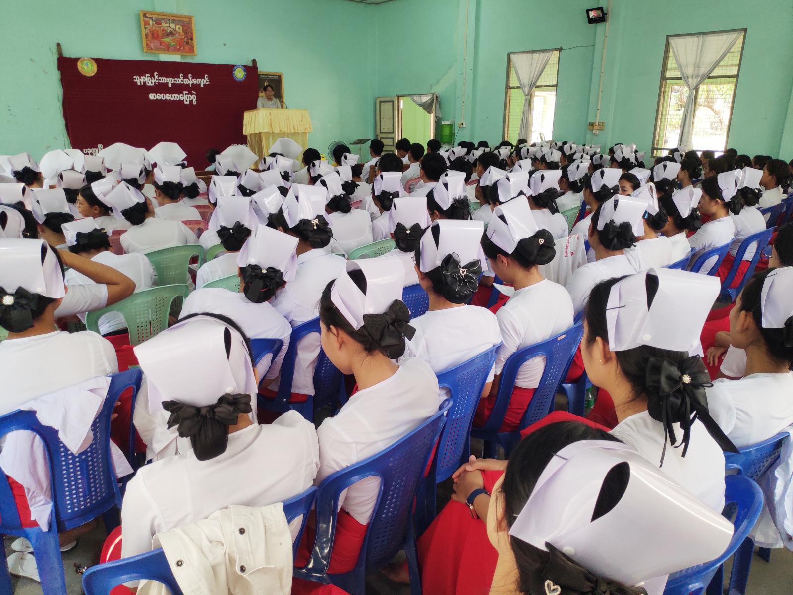 ထို့နောက် မြို့နယ်စာရေးဆရာအသင်းမှ စာအုပ်များလှူဒါန်းပေးခဲ့ပြီး သူနာပြုနှင့်သားဖွားသင်တန်းကျောင်းမှ ကျောင်းအုပ်ဆရာမကြီးက ကျေးဇူးတင်စကားပြောကြားခဲ့သည်။ ဟောပြောပွဲသို့ တက်ရောက်လာကြသော သင်တန်းသူ/သားများက ပြန်ကြားရေးနှင့်ပြည်သူ့ဆက်ဆံရေးဦးစီးဌာနက ပြသထားသော အသိပညာပေးနံကပ်စာစောင်များ၊ ပိုစတာများအား လေ့လာမှတ်သား ကြည့်ရှုခဲ့ကြကြောင်း သိရသည်။