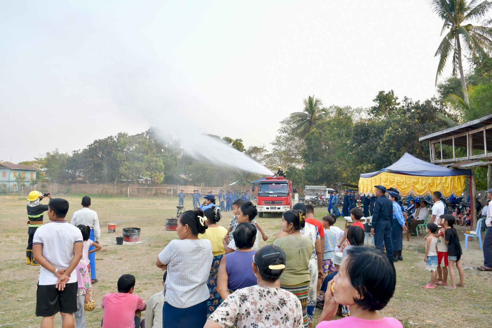 ယင်းနောက် နေပြည်တော်ကောင်စီဝင် ဦးဇေယျာလင်းက ပြည်သူများအား သဘာဝဘေးအန္တရာယ်များ ဖြစ်သည့် ရေဘေး၊ လေဘေး၊ မီးဘေးအန္တရာယ်များမဖြစ်ပွားမှီ ကြိုတင် ဆောင်ရွက်ရမည့် နည်းလမ်းများနှင့် ဘေးအန္တရာယ်များဖြစ်ပွားပါက ဆောင်ရွက်ရမည့်နည်းလမ်းများနှင့်စပ်လျဉ်း၍ ရှင်းလင်းပြောကြားပြီး မီးသတ်တပ်ဖွဲ့ဝင်များအား စားသောက်ဖွယ်ရာများ ပေးအပ်ခဲ့သည်။