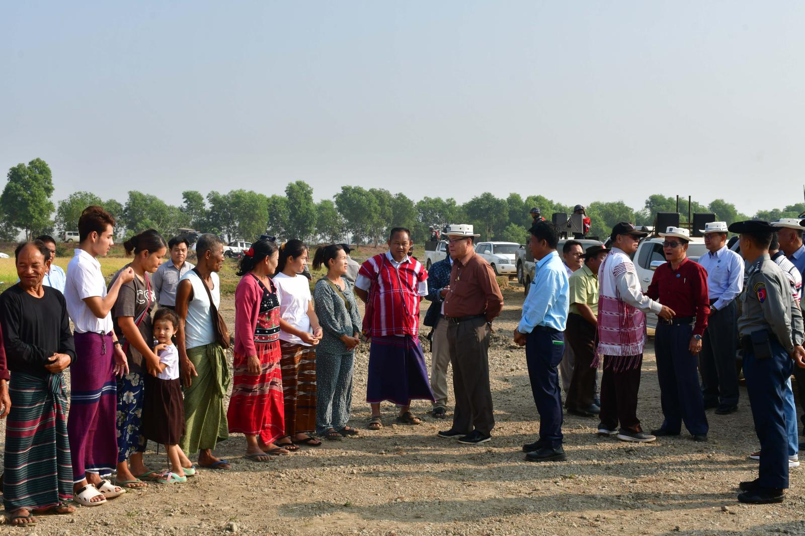 ထို့နောက် ပြည်နယ်ဝန်ကြီးချုပ်က တောင်သူများနှင့်တွေ့ဆုံ၍ လယ်ယာမြေအဆင့်မြှင့်တင်ခြင်းမှ ရရှိမည့်အကျိုးကျေးဇူးများကို ရှင်းလင်းပြောကြားပြီး စားဝတ်နေရေးအဆင်ပြေစေရန်၊ စားရေရိက္ခာဖူလုံပိုလျှံစေရန် စိုက်ပျိုးမွေးမြူရေးလုပ်ငန်းများကို စဉ်ဆက်မပြတ်လုပ်ကိုင်ဆောင်ရွက်ကြစေလိုပြီး လိုအပ်သည့်ကူညီဖြည့်ဆည်းမှုများကို ပြည်နယ်အစိုးရအဖွဲ့မှ ဆောင်ရွက်ပေးသွားမည်ဖြစ်ကြောင်း၊ အဆင့်မြှင့်တင်ဖော်ထုတ်ပြီးသည့် လယ်ယာမြေများကို တောင်သူများအား ပြန်လည်ဝေမျှပေးသွားမည်ဖြစ်ကြောင်း ပြောကြားပြီး တောင်သူဆွေးနွေးတင်ပြသည့် ရေသွင်း၊ ရေနုတ်မြောင်းများ၊ ကုန်ထုတ်လမ်းများ၊ ကျေးရွာချင်းဆက်လမ်းများ ဆောင်ရွက်ပေးနိုင်ရေး ဌာနဆိုင်ရာတာဝန်ရှိသူများနှင့် ပေါင်းစပ်ညှိနှိုင်း ဖြည့်ဆည်းဆောင်ရွက်ပေးခဲ့ကာ လယ်ယာမြေအဆင့်မြှင့်တင်ခြင်းနှင့် ကုန်ထုတ်လမ်းဆောင်ရွက်ပေးနိုင်ရေး ကြည့်ရှုစစ်ဆေးခဲ့ကြသည်။