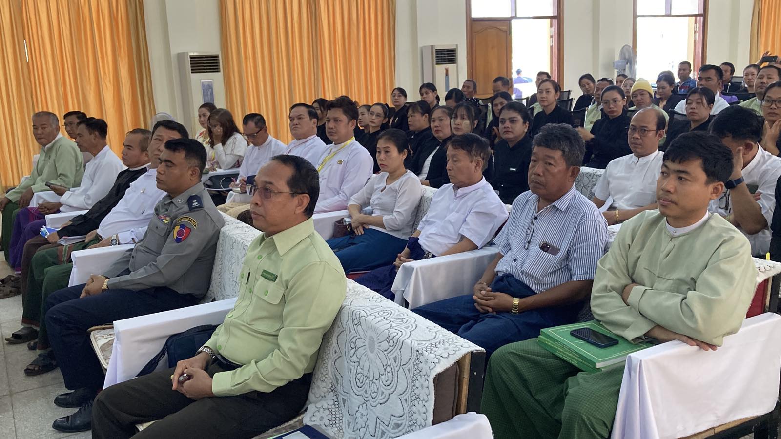 ကရင်ပြည်နယ်၊ မြဝတီမြို့ အမှတ်(၄)ရပ်ကွက်၊ မြန်မာ-ထိုင်းချစ်ကြည်ရေးအမှတ်(၂) တံတားလမ်းရှိ မြို့တော်ခန်းမတွင် ယမန်နေ့ နံနက်(၉)နာရီအချိန်၌ ခရိုင်/မြို့နယ်စီမံခန့်ခွဲရေးနှင့်အုပ်ချုပ်ရေးကော်မတီမှ ကြီးမှူးကျင်းပသည့် မြေယာအသုံးချမှုနှင့်ပတ်သက်၍ အသိပညာပေးအခမ်းအနားကိုကျင်းပခဲ့ရာ ခရိုင်စီမံခန့်ခွဲရေးနှင့်အုပ်ချုပ်ရေးကော်မတီဥက္ကဋ္ဌ ခရိုင်အုပ်ချုပ်ရေးမှူး ဦးကောင်းစံလင်း၊ ခရိုင်စီမံခန့်ခွဲရေးနှင့်အုပ်ချုပ်ရေးကော်မတီအဖွဲ့ဝင်(၂) ဦးစိန်သောင်း၊ မြို့နယ်စီမံခန့်ခွဲရေးနှင့် အုပ်ချုပ်ရေးကော်မတီဥက္ကဋ္ဌ မြို့နယ်အုပ်ချုပ်ရေးမှူး၊ ဦးဇော်မော်အောင်၊ ခရိုင်ဥပဒေအရာရှိ ဦးဝင်းရီ၊ မြို့နယ်မြေစာရင်းဦးစီးမှူး ဦးသောင်းထွဋ်၊ ခရိုင်သစ်တော ဦးစီးမှူးဦး အောင်စိုးတင့်၊ ပြည်တွင်းအခွန်ဦးစီးဌာန၊ မြို့နယ်ဦးစီးမှူး ဦးအောင်နိုင်ထွေး၊ မြို့နယ်စည်ပင်သာယာရေးအဖွဲ့၊ အ မှုဆောင်အရာရှိ၊ ဒုတိယညွှန်ကြားရေးမှူးဦးကျော်ကျော်ဦးနှင့် ခရိုင်/မြို့နယ်အဆင့်ဌာနဆိုင်ရာတာဝန်ရှိသူများ၊ မြို့နယ်/ရပ်ကွက်/ကျေးရွာအုပ်ချုပ်ရေးအဖွဲ့ဝင်များ၊ မြဝတီမြို့ အိမ်ခြံမြေအကျိုးတော်ဆောင်အသင်းမှတာဝန်ရှိသူများ၊ မြို့နယ်/ကျေးရွာများရှိ တောင်သူများတက်ရောက်ခဲ့ကြသည်။