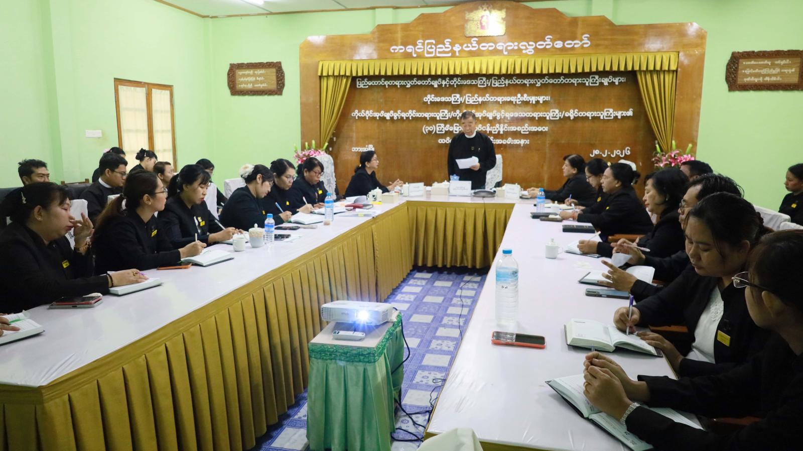 ပြည်ထောင်စုတရားလွှတ်တော်ချုပ်တွင် ဖေဖော်ဝါရီလ (၅)ရက်နေ့မှ (၆)ရက်နေ့အထိ ကျင်းပခဲ့သော ပြည်ထောင်စုတရားလွှတ်တော်ချုပ်နှင့် တိုင်းဒေသကြီး/ပြည်နယ် တရားလွှတ်တော်များ၊ ကိုယ်ပိုင်အုပ်ချုပ်ခွင့်ရတိုင်း တရားရုံး၊ ကိုယ်ပိုင်အုပ်ချုပ်ခွင့်ရ ဒေသတရားရုံး၊ ခရိုင်တရားရုံးများ၏ (၃၀)ကြိမ်မြောက် လုပ်ငန်းညှိနှိုင်းအစည်းအဝေးမှ လမ်းညွှန်မှာကြားချက်များအပေါ် ထပ်ဆင့်ရှင်းလင်းသည့် အခမ်းအနားကို ယမန်နေ့နံနက် (၉)နာရီက ကရင်ပြည်နယ် တရားလွှတ်တော် အစည်းအဝေးခန်းမ၌ ကျင်းပသည်။
