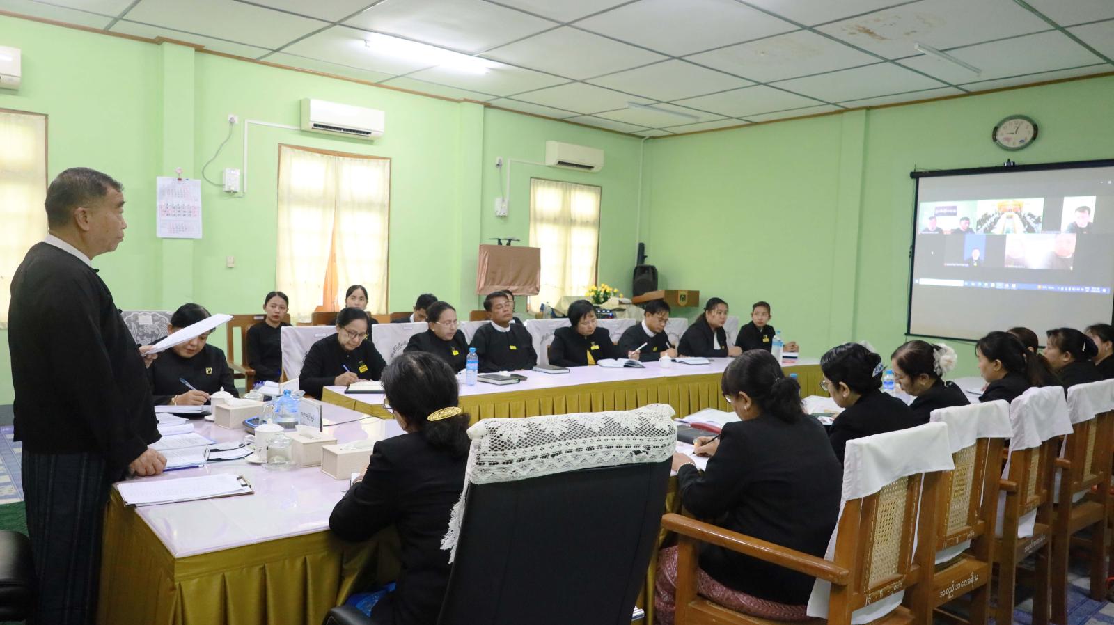 ထို့နောက် ပြည်နယ်တရားရေးဦးစီးမှူး ဒေါ်ခင်ပြုံးရီက (၃၀)ကြိမ်မြောက် အကြိုလုပ်ငန်းညှိနှိုင်းအစည်းအဝေးတွင် ပြည်ထောင်စုတရားလွှတ်တော်ချုပ်မှ အမြဲတမ်းအတွင်းဝန်၊ ညွှန်ကြားရေးမှူးချုပ်များ၊ ဒုတိယညွှန်ကြားရေးမှူးချုပ်များ၊ ညွှန်ကြားရေးမှူးများ၏ တရားစီရင်ရေး၊ စီမံခန့်ခွဲရေးနှင့် ရုံးလုပ်ငန်းဆိုင်ရာ မှာကြားချက်များကို ထပ်ဆင့်ရှင်းလင်းဆွေးနွေးမှာကြားခဲ့ပြီး အဆိုပါထပ်ဆင့်ရှင်းလင်းပွဲသို့ ကရင်ပြည်နယ်တရားလွှတ်တော်တရားသူကြီးချုပ်၊ ပြည်နယ်တရားလွှတ်တော်တရားသူကြီးများ၊ ပြည်နယ်တရားရေးဦးစီးမှူးနှင့် ပြည်နယ်တရားလွှတ်တော်၊ ခရိုင်/မြို့နယ် တရားရုံးများမှ တရားသူကြီးများ၊ တရားရေးအရာရှိများ စုစုပေါင်း (၂၉)ဦး တက်ရောက်ကြပြီး မြဝတီ ကြာအင်းဆိပ်ကြီး၊ သံတောင်ကြီး ခရိုင်/မြို့နယ်တရားရုံးများမှ တရားသူကြီး (၆)ဦးတို့မှာ ဗီဒီယိုကွန်ဖရင့်စနစ်ဖြင့် တက်ရောက်ခဲ့ကြကြောင်း သတင်းရရှိသည်။