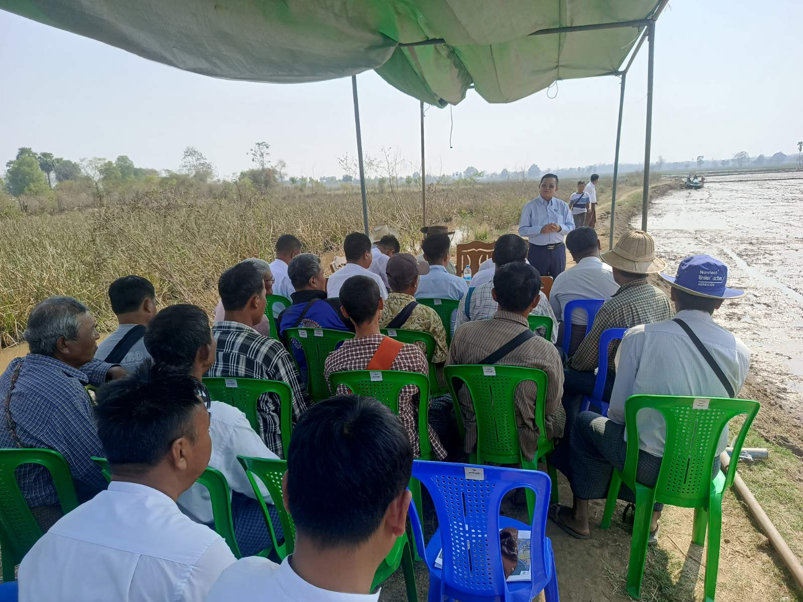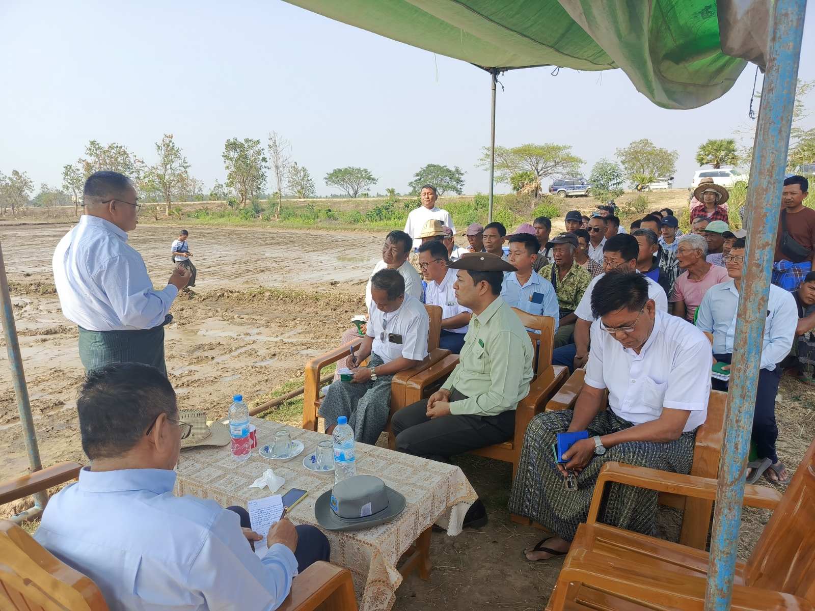 ထို့နောက် နေပြည်တော်ကောင်စီဝင်ဦးမြင့်စိုးသည် လယ်ဝေးမြို့နယ်၊ ရှားချောင်းကျေးရွာ၊ ကွင်းအမှတ် ၁၈၀၂ က၊ တောင်သူဦးကျော်စွာလင်း၏ လယ်မြေ ၅ဒသမ၅ဧက တွင် ၁၀တန်းသွား မျိူးစေ့ချစက်(ဆီဒါ) ဖြင့်နှံကောက်မျိုး နွေစပါးစိုက်ပျိုးနေမှုအား ကွင်းဆင်းကြည့်ရှု၍ ဒေသခံ တောင်သူများနှင့်တွေ့ဆုံကာ လိုအပ်သည်များအား သက်ဆိုင်ရာဌာနများနှင့် ညှိနှိုင်းဖြည့်ဆည်း ဆောင်ရွက်ပေးခဲ့သည်။ လယ်ဝေးမြို့နယ်အတွင်း နွေစပါးစိုက်ပျိုးရန်အတွက် ၁၆၀၄၅ ဧက လျာထားကာ၂၄၁ ဧကစိုက်ပျိုးပြီးဖြစ်ကြောင်း သိရသည်။
