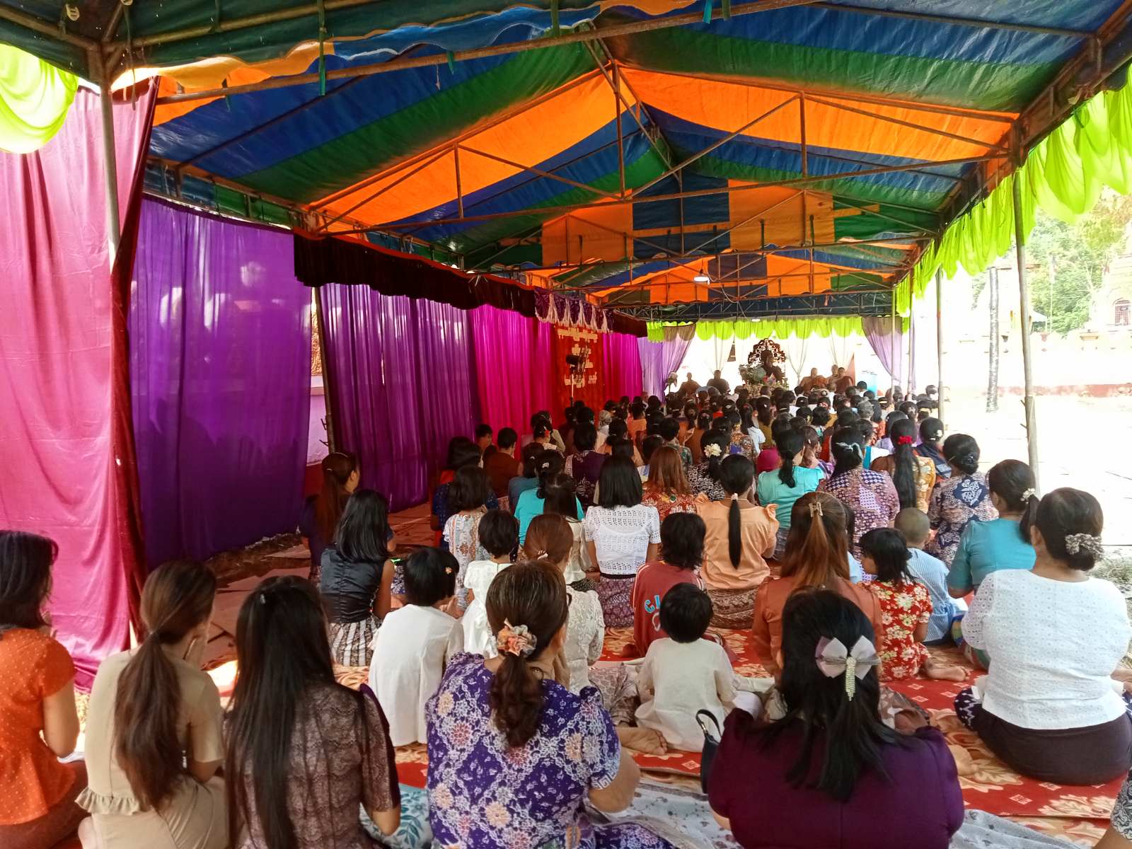 ရှေးဦးစွာ မြို့သရေဆောင်ရတနာအောင်သိဒ္ဓိမြို့ဦးစေတီလှိုဏ်ဂူတော်ဘုရားအား စုပေါင်းလှူဒါန်းထားသော ပြည်သူများနှင့် တရားနာဧည့်ပရိတ်အပေါင်းတို့က ဆရာတော်သံဃာတော်များအား ဩကာသကန်တော့ချိုးဖြင့် ရှိခိုးပူဇော်ခြင်း၊ တိုင်းဒေသကြီးသံဃာနာယကအဖွဲ့ဝင် ကျောက်မြောင်းတောင်သစ်ကျောင်းတိုက်ဆရာတော် ဘဒ္ဒန္တဥူးအာစရထံမှ ငါးပါးသီလခံယူခြင်းနှင့် ဩဝါဒကထာခံယူခြင်း၊ ကြွရောက်တော်မူလာကြသည့် ဆရာတော်သံဃာတော်အရှင်သူမြတ်တို့မှ အန္တရာယ်ကင်းပရိတ်တရားတော်များကို ရွတ်ဖတ်ပူဇော်ပေးခြင်းနှင့် လှူဒါန်းမှုအစုစုတို့အတွက် ရေစက်သွန်းချ တရားတော်နာယူခဲ့ပြီးနောက် ဗုဒ္ဓသာသနံ စိရံတိဌတု (၃) ကြိမ် ရွတ်ဆိုကာ အခမ်းအနားရုတ်သိမ်းလိုက်သည်။