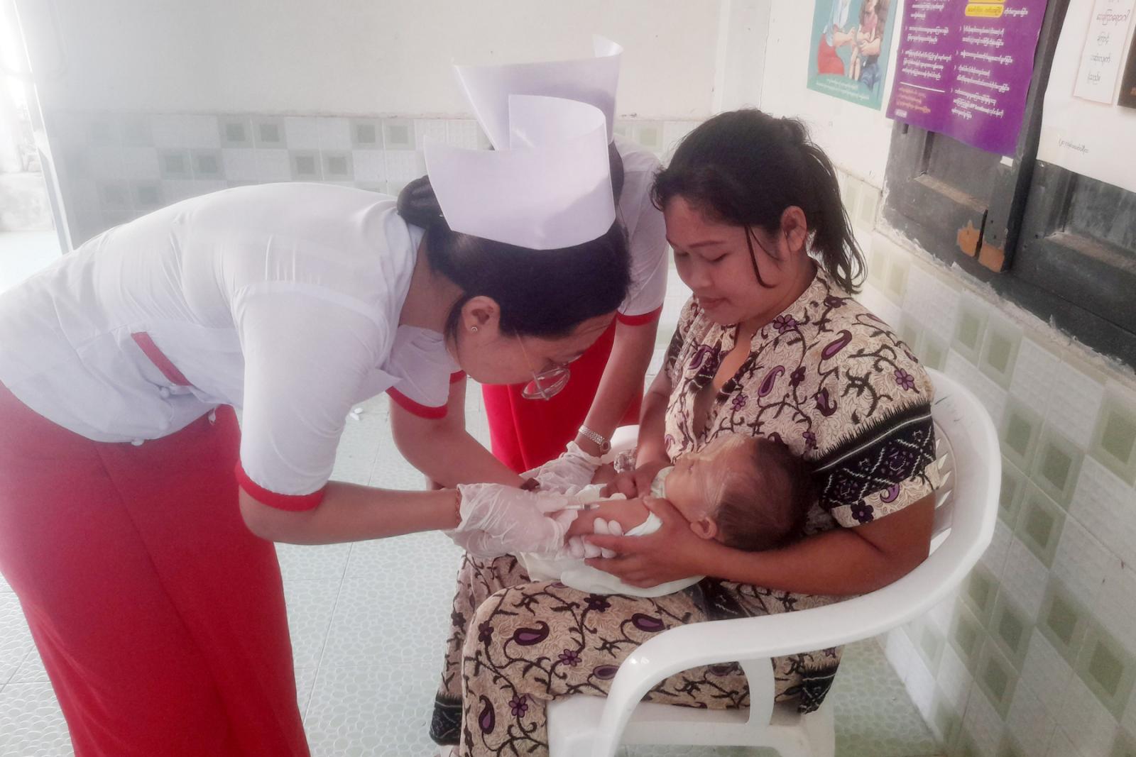 ကာကွယ်ဆေးလာရောက်ထိုးနှံကြသည့် ကိုယ်ဝန်ဆောင်မိခင်များနှင့်ကလးမိခင်များကိုပြည်သူ့ကျန်းမာရေးဦးစီးဌာန မြို့နယ်မိခင်နှင့်ကလေးကျန်းမာရေးဌာနမှ တာဝန်ရှိသူများက ကျန်းမာရေးဆိုင်ရာ သတိပြုနေထိုင်ရမည့် ဆောင်ရန်ရှောင်ရန်များနှင့် ပတ်သက်သည်များကို အသိပညာပေးပြောကြားပြီး ကိုယ်ဝန်ဆောင်မိခင်များအား မေးခိုင်ကာကွယ်ဆေးထိုးနှံပေးခြင်း၊ မွေးကင်းစမှအသက် (၂)နှစ်အထိ ကလေးများအား BCG ဦးနှောက်အမြှေးရောင်တီဘီ၊ လူးစေ့တီဘီရောဂါကာကွယ်ဆေး၊ OPV ပိုလီယိုရောဂါကာကွယ်ဆေး၊ ပြင်းထန်အဆုတ်ရောင်ကာကွယ်ဆေး၊ ဂျပန်ဦးနှောက်အမြှေးရောင် ရောဂါကာကွယ်ဆေး၊ (ဆုံဆို့နာ၊ ကြက်ညှာချောင်းဆိုး၊ မေးခိုင်ရောဂါ၊ ဦးနှောက်အမြှေးရောင်ရောဂါ၊ အသည်းရောင် အသားဝါ(ဘီ) စသည့်(၅)မျိုးစပ် ကာကွယ်ဆေး၊ ဝက်သက်ဂျိုက်သိုးရောဂါ ကာကွယ်ဆေး၊ ဝမ်းပျက်ဝမ်းလျှောရောဂါ ကာကွယ်ဆေးစသည့် အသက်အရွယ်အလိုက်သတ်မှတ်ထားသည့် ကာကွယ်ဆေးများကို လစဉ်ပုံမှန် ထိုးနှံပေးလျက်ရှိကြောင်း သိရသည်။