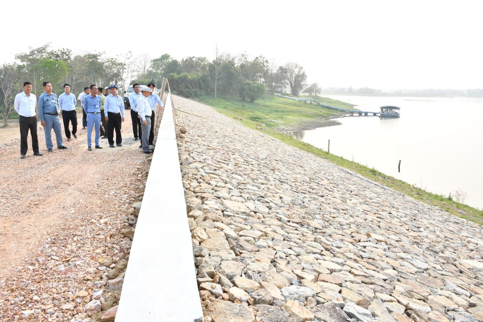ဆက်လက်၍ မွန်းလွဲပိုင်းတွင် နေပြည်တော်ကောင်စီဥက္ကဋ္ဌသည် ငလျင်ဘေးကြောင့် ထိခိုက်ပျက်စီးခဲ့သော ချောင်းမကြီးရေလှောင်တမံပြုပြင်နမှုကို ကြည့်ရှုစစ်ဆေးရာ တာဝန်ရှိသူများမှ ချောင်းမကြီးရေလှောင်တမံပြုပြင်နေမှုကို ရေစစ်ကျောက်ရိုးပြုပြင်ပြီးစီးမှု၊ ပျက်စီးသွားသော တမံမြေသားကျင်း ဖယ်ထုတ်ပြီးစီးမှု၊ တမံမြေသားအသစ် ဖို့ကြိတ်ပြီးစီးနေမှု၊ တမံအထက်ပိုင်း လှိုင်းကာကျောက်စီခြင်းလုပ်ငန်းများဆောင်ရွက်နေမှုကို ရှင်းလင်းတင်ပြရာ နေပြည်တော်ကောင်စီ ဥက္ကဋ္ဌက လုပ်ငန်းများ အရည်အသွေးပြည့်မီစွာဖြင့် အမြန်ပြီးစီးအောင် ဆောင်ရွက်ရန်၊ တမံ၏အင်္ဂါရပ်နှင့်အညီ ထည့်သွင်းဆောင်ရွက်ရန်၊ လိုအပ်သောရေစုမြောင်း၊ ရေဆင်းမြောင်း၊ လှိုင်းကာကျောက်၊ Parapet များကိုပါ တစ်ပါတည်းပြီးစီးအောင်ဆောင်ရွက်ရန် မှာကြားခဲ့သည်။