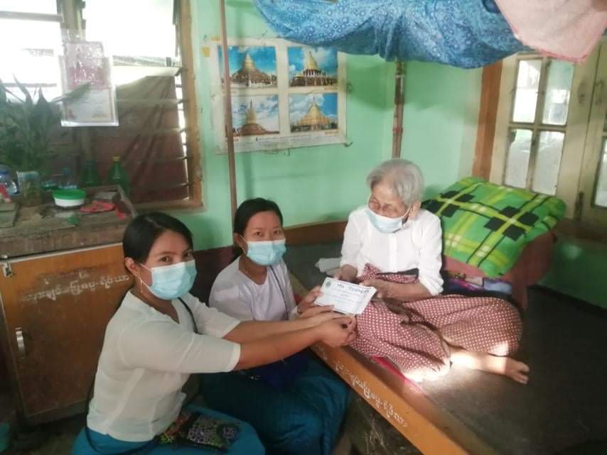 ထောက်ပံ့ပေးအပ်ရာတွင် တစ်မြို့နယ်လုံးရှိ အသက်(၈၅)နှစ်အထက် ဘိုးဘွား(၇၁၅)ဦးအတွက် လူမှုရေးပင်စင် ထောက်ပံ့ငွေ(၁)လလျှင် (၁)သောင်းကျပ်နှုန်းဖြင့် (၃)လစာ (၃)သောင်းကျပ်အား ယခု လဆန်းပိုင်းတွင် မြို့နယ်လူမှုဝန်ထမ်း ဦးစီးဌာနမှ သက်ဆိုင်ရာ ရပ်ကွက်/ကျေးရွာ အုပ်ချုပ်ရေးမှူးများ လက်ဝယ်အရောက် ထောက်ပံ့ပေးအပ်ခဲ့ပြီး ရပ်ကွက်၊ ကျေးရွာ အုပ်ချုပ်ရေးမှူးများမှ တာဝန်ခံ၍ ဘိုးဘွားများ၏ လက်ဝယ်အရောက် ထောက်ပံ့ပေးအပ်ခဲ့ကြောင်း မြို့နယ် လူမှုဝန်ထမ်း ဦးစီးဌာနမှ သိရသည်။