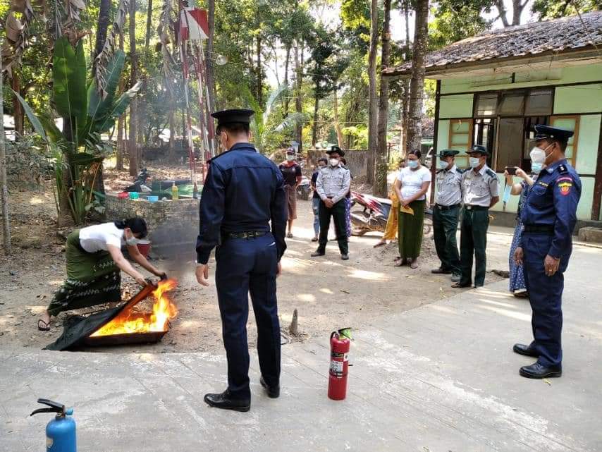 အဆိုပါမီးဘေးသရုပ်ပြ ဆောင်ရွက်ရာတွင် မြို့နယ်မီးသတ်ဦးစီးအရာရှိ ဦးစိုးနိုင်ဦးဆောင်၍ သန္ဓေမီးသတ် တပ်ဖွဲ့ဝင်များက မီးငြိမ်းသတ်ခြင်း နည်းစနစ်များကို စနစ်တကျ ဇာတ်တိုက်လေ့ကျင့် ဆောင်ရွက် ပေးခဲ့ကြောင်း သိရသည်။