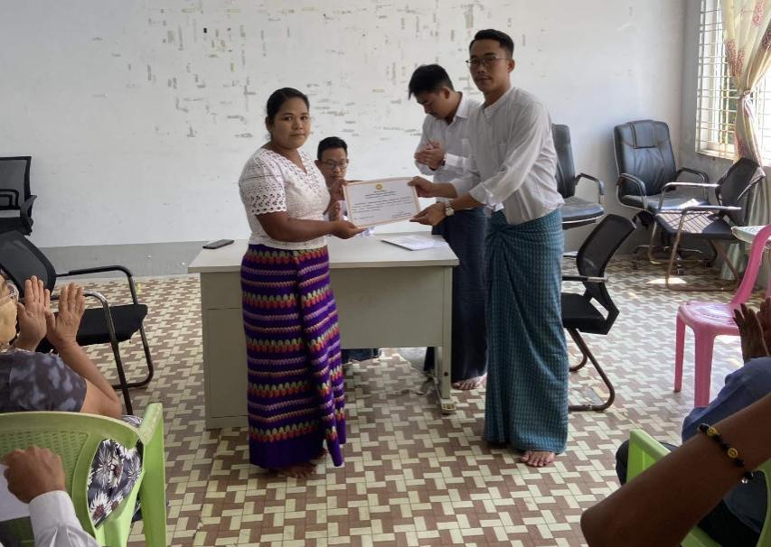 ထို့နောက် သင်တန်းသား၊ သင်တန်းသူများအား တာဝန်ရှိသူများမှ သင်တန်းဆင်းလက်မှတ်များ ပေးအပ်ခဲ့ကြပြီး အမှတ်တရ ဓါတ်ပုံများရိုက်ကူးခဲ့ကြသည်။