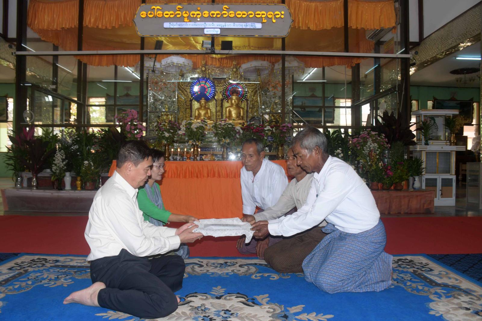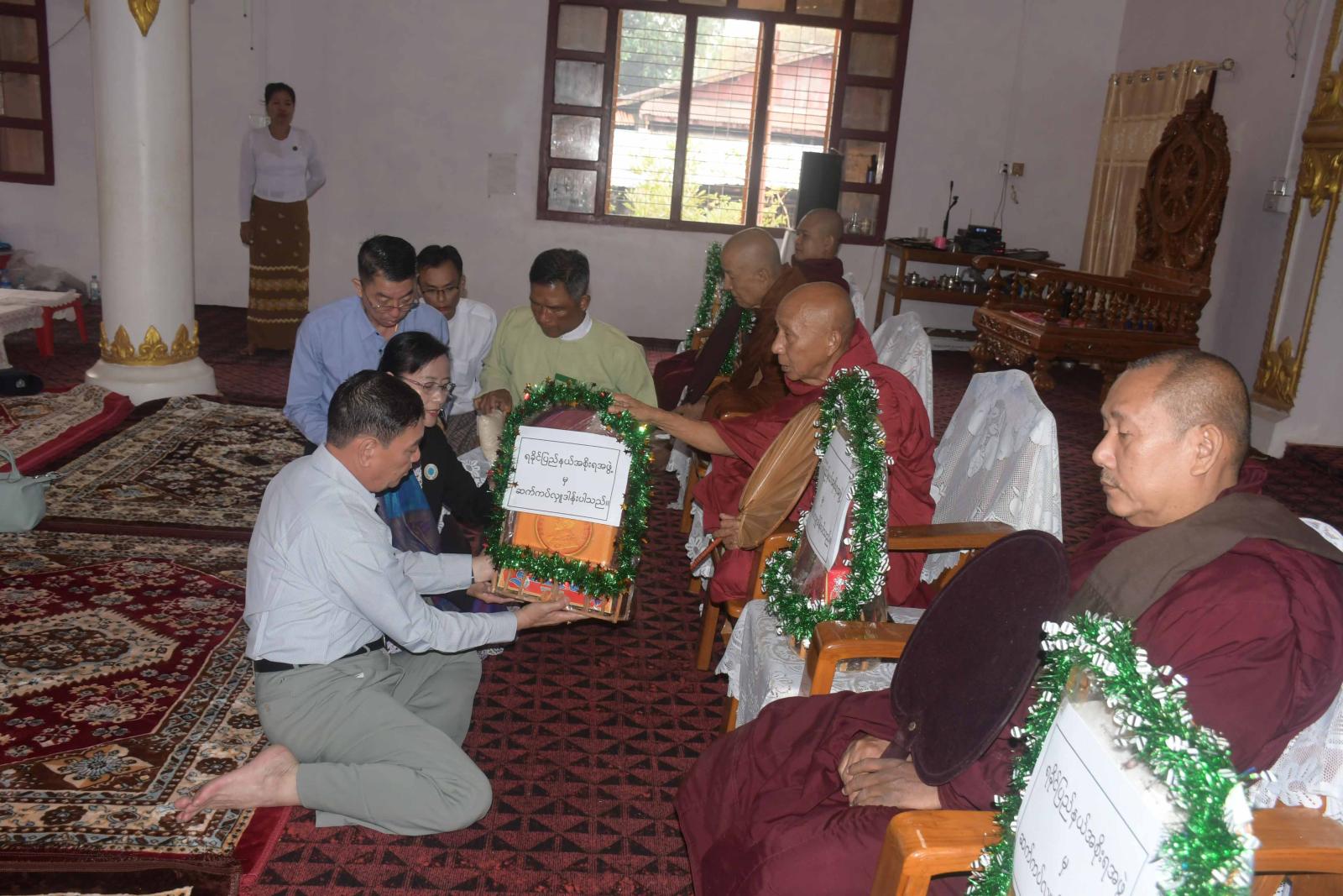 ရခိုင်ပြည်နယ်ဝန်ကြီးချုပ် ဦးထိန်လင်းသည် မတ်လ ၅ ရက်နေ့နံနက်ပိုင်းတွင် ကျောက်ဖြူမြို့၊ နဂါးကျောင်း ပရိယတ္တိစာသင်တိုက်၌ ကျောက်ဖြူမြို့ပေါ်ရှိ ဆရာတော်ကြီးများအား သွားရောက် ဖူးမြော်ကြပြီး ဆွမ်းဆန်တော်နှင့်လှူဖွယ်ဝတ္ထုပစ္စည်းများဆက်ကပ်လှူဒါန်းကြရာ မြို့နယ်သံဃနာယကအဖွဲ့ဥက္ကဋ္ဌ၊ ဓမ္မဆာယာကျောင်းတိုက်ဆရာတော် ဘဒ္ဒန္တစန္ဒာဝရထံမှ ပြည်နယ်ဝန်ကြီးချုပ် အမှူးပြုသော ဧည့်ပရိသတ်များက ငါးပါးသီလခံယူ ဆောက်တည်ကြသည်။ ဆက်လက်၍ ပြည်နယ်ဝန်ကြီးချုပ် နှင့်ဇနီး၊ ပြည်နယ်အစိုးရ အဖွဲ့ဝင်များ၊ ဌာနဆိုင်ရာတာဝန်ရှိသူများက ဆရာတော်ကြီးများထံသို့ ဆွမ်းဆန်တော်နှင့်လှူဖွယ်ဝတ္ထု ပစ္စည်းများ ဆက်ကပ်လှူဒါန်းခဲ့ကြသည်။