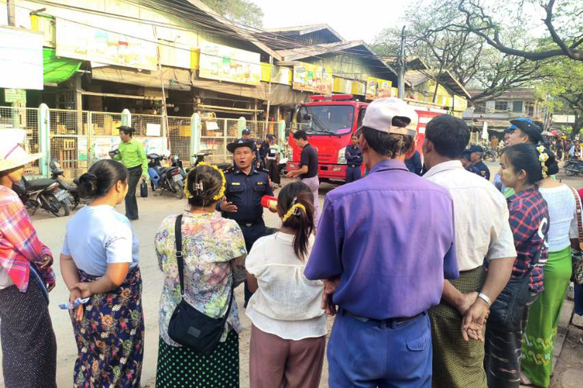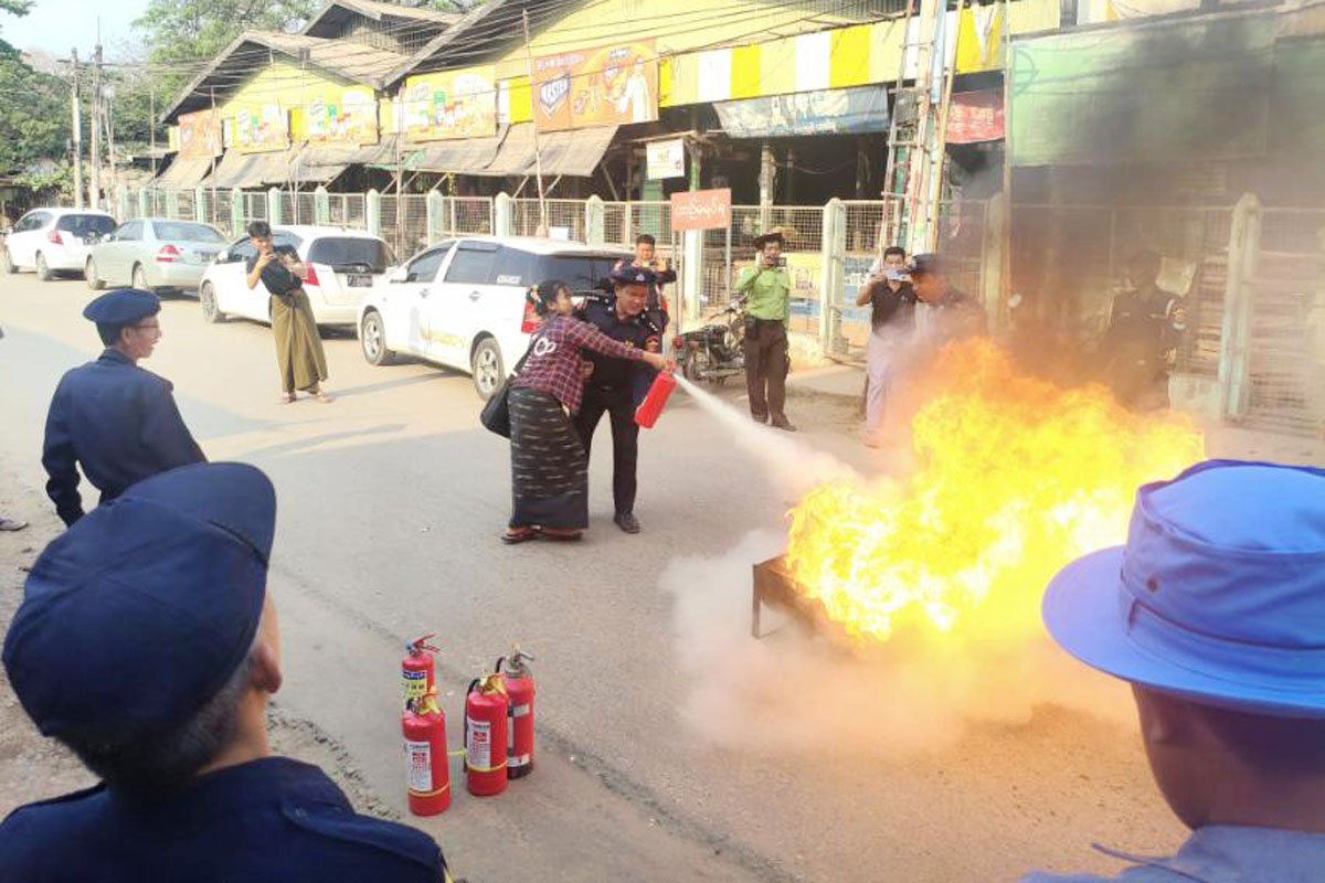 ကျောက်ပန်းတောင်းမြို့ရှိ ဈေးများ မီးဘေးလုံခြုံရေး စစ်ဆေးအသိပညာပေးခြင်းနှင့် ဇာတ်တိုက်လေ့ကျင့်ခြင်းများ ဆောင်ရွက်