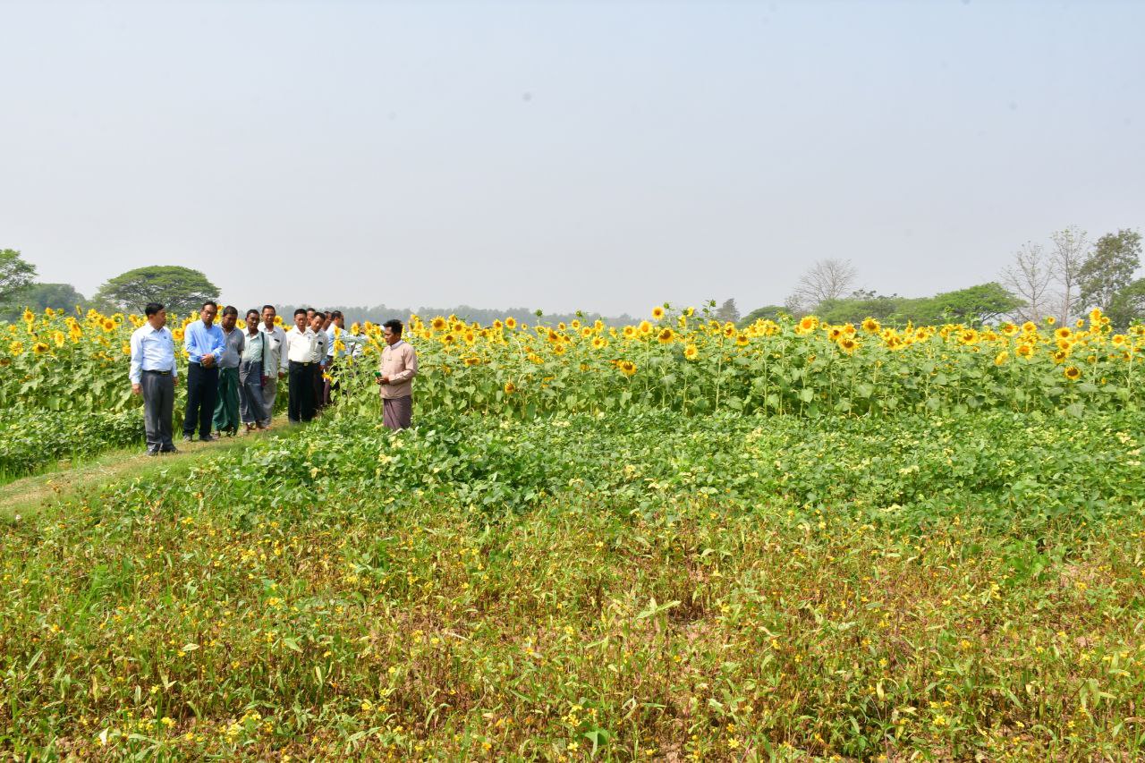 ထို့နောက် နေပြည်တော်ကောင်စီဥက္ကဋ္ဌနှင့် တာဝန်ရှိသူများက ကွင်းအမှတ် (၁၆၂၃(က))ရှိ တောင်သူ ဒေါ်ဆန်းတင်နှင့် တောင်သူ ဦးပြည့်ဝတို့၏ ပန်းနှမ်း(ဒေသမျိုး)၊ ပဲယင်းနီ၊ ဆင်းရွှေကြာ-၂ နေကြာ၊ ပဲပုပ်(ရေဆင်း-၁၅) ဘောင်ဖော်ကြဲပက်စိုက်ပျိုးခြင်း၊ စပ်မျိုးပြောင်းဖူး (၁၄) မျိုးအား မျိုးစပ်ကူးစပ်ခြင်း ဆောင်ရွက်ထားရှိမှုများကို လှည့်လည်ကြည့်ရှုပြီး တာဝန်ရှိသူများအား စိုက်ပျိုးရေးကဏ္ဍ ဖွံ့ဖြိုးတိုးတက်ရေးအတွက် သုတေသနလုပ်ငန်းများကို စဉ်ဆက်မပြတ်ဆောင်ရွက်သွားရန်၊ ဒေသနှင့်ကိုက်ညီပြီး အထွက်နှုန်းကောင်းသည့် မျိုးစေ့တွေကို တောင်သူများထံ လက်ဝယ်အရောက် ဖြန့်ဖြူးပေးနိုင်ရန်၊ ပြည်တွင်းစားသုံးဆီ ဖူလုံမှုရှိစေရေး ဆီထွက်သီးနှံ စိုက်ဧကတိုးချဲ့ရန်နှင့် လိုအပ်သည်များကို မှာကြားခဲ့သည်။