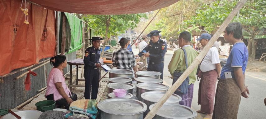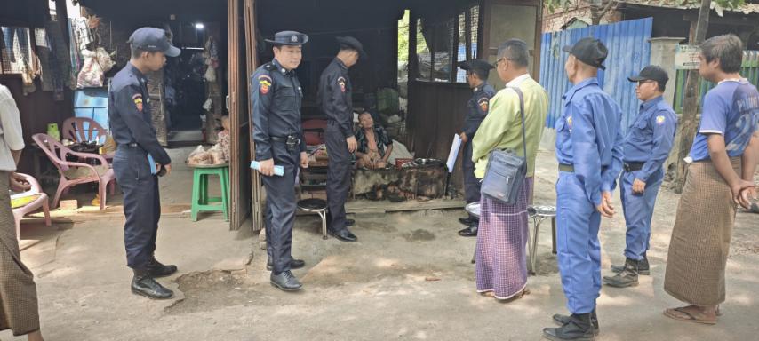 မန္တလေးတိုင်းဒေသကြီး၊ အမရပူရမြို့နယ်၌ မီးဘေးလုံခြုံရေးနှင့် ကြိုတင်ကာကွယ်ရေး အတွက် ကွင်းဆင်းစစ်ဆေးခြင်းများကို ဆောင်ရွက်လျက်ရှိရာ ယနေ့နံနက်ပိုင်းက တက္ကသိုလ်ဝင်တန်းစာမေးပွဲကျင်းပမည့် အမှတ် (၁) အခြေခံပညာအထက်တန်းကျောင်း စာစစ်ဌာနအနီးတွင် မီးဘေးလုံခြုံရေးတစ်အိမ်တက်ဆင်း ကွင်းဆင်းစစ်ဆေးသည်။