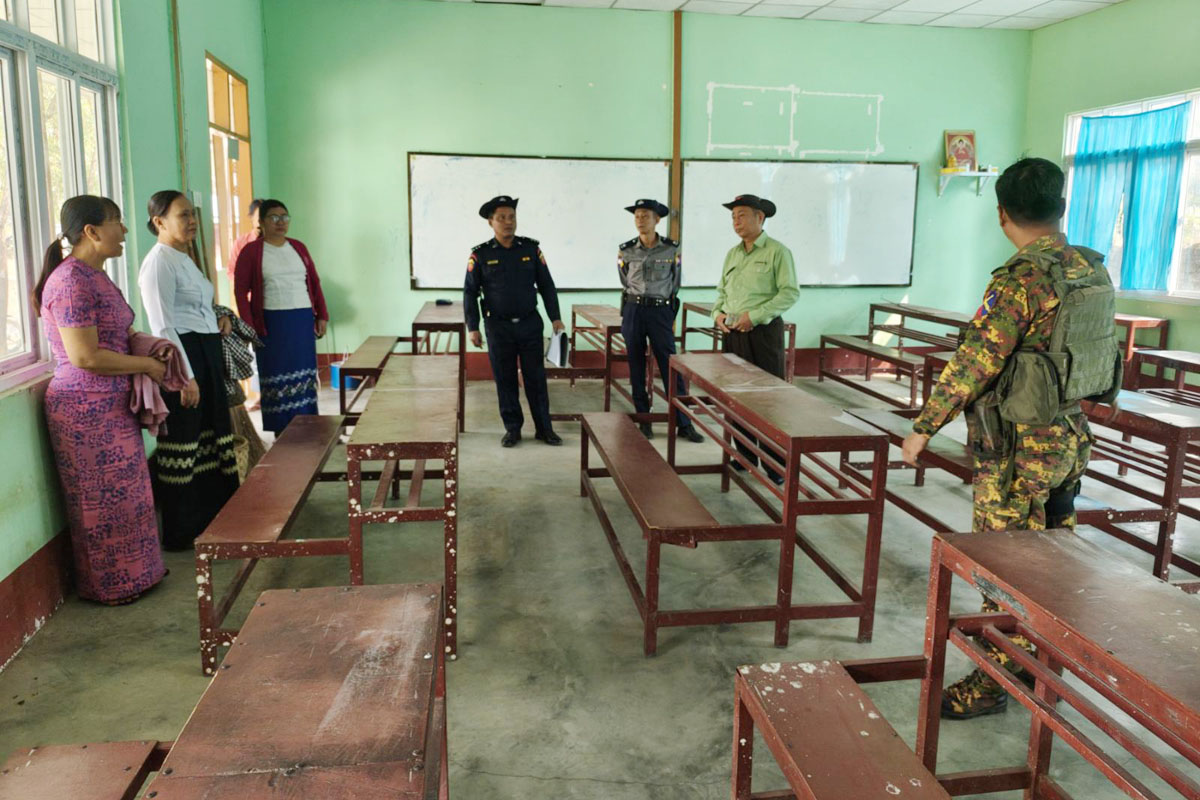 မြို့နယ်စီမံခန့်ခွဲရေးနှင့်အုပ်ချုပ်ရေးကော်မတီဥက္ကဋ္ဌ၊ မြို့နယ်အုပ်ချုပ်ရေးမှူး ဦးသန်းလွင်၊ ကော်မတီအတွင်းရေးမှူး မြို့နယ်ရဲတပ်ဖွဲ့မှူး ရဲမှူးနိုင်ဝင်းထွန်း၊ အဖွဲ့ဝင် ဗိုလ်မှူးနောင်ထွန်းနီ၊ မြို့နယ်ပညာရေးမှူး ဒေါ်ခင်ခင်နွယ်နှင့် မြို့နယ်မီးသတ်ဦးစီးမှူး၊ မြို့နယ်လျှပ်စစ်မန်နေဂျာတို့ပါဝင်သည့် တာဝန်ရှိသူများသည် တက္ကသိုလ်ဝင်စာမေးပွဲကျင်းပမည့် စာဖြေဌာနများဖြစ်သည့် အနော်ရထာ အ.ထ.ကခွဲ(ပုပ္ပား)စာဖြေဌာန၊ အ.ထ.က(၁)ပင်မနှင့် အ.ထ.က(၁)တိုးချဲ့စာဖြေဌာန၊ အ.ထ.က(၂)စာဖြေဌာန၊ မြို့ရှေ့ အ.ထ.ကစာဖြေဌာနနှင့် လက်ပံပျားစာဖြေဌာန၊ စက်မှု၊ စိုက်၊ မွေး(လက်ပံပျား)စာဖြေဌာန အစရှိသည့် စာဖြေဌာန ၇ ခုတို့ကို ကွင်းဆင်းစစ်ဆေးကြသည်။ ထိုသို့စစ်ဆေးရာတွင် မြို့နယ်ဥက္ကဋ္ဌ ဦးသန်းလွင်နှင့်အဖွဲ့ဝင်များက တက္ကသိုလ်ဝင်စာမေးပွဲအောင်မြင်စွာ ကျင်းပနိုင်ရေး ကြိုတင်ပြင်ဆင်ထားရှိမှုအခြေအနေများ၊ စာဖြေခန်းများတွင် မီးအလင်းရောင် လုံလောက်စွာရရှိရေးအတွက် လျှပ်စစ်မီးသွယ်တန်းထားရှိမှုနှင့် မီးဘေးလုံခြုံရေး ဆောင်ရွက်ထားရှိမှုအခြေအနေများ၊ သောက်သုံးရေ လုံလောက်စွာရရှိမှုနှင့် ကျန်းမာရေးဆိုင်ရာကိစ္စရပ်များ၊ သန့်ရှင်းရေးဆောင်ရွက်ထားရှိမှု အခြေအနေများကို ကြည့်ရှုစစ်ဆေးကြပြီး၊ သက်ဆိုင်ရာ စာဖြေဌာနတာဝန်ရှိသူများနှင့် ရပ်ကွက်/ကျေးရွာအုပ်စု အုပ်ချုပ်ရေးမှူးများအား လိုအပ်သည်များကို ပေါင်းစပ်ညှိနှိုင်း ဆောင်ရွက်ပေးခဲ့ကြောင်း သိရသည်။