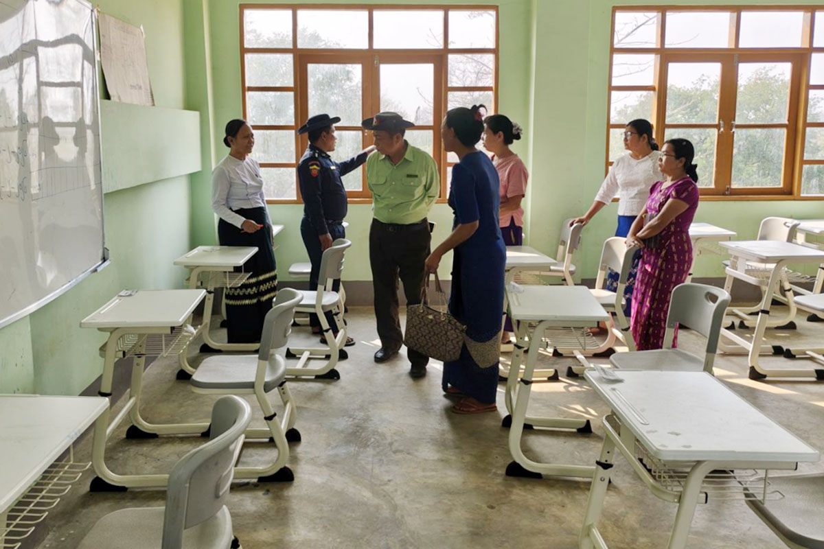 မန္တလေးတိုင်းဒေသကြီး၊ ညောင်ဦးခရိုင်၊ ကျောက်ပန်းတောင်းမြို့နယ်၌ ၂၀၂၆ ခုနှစ်၊ တက္ကသိုလ်ဝင်စာမေးပွဲ အောင်မြင်စွာကျင်းပနိုင်ရေးအတွက် စာဖြေဌာနများ ပြင်ဆင်ထားရှိမှုအခြေအနေများကို ယမန်နေ့နံနက် ၉ နာရီ ၄၅ မိနစ်က မြို့နယ်စီမံခန့်ခွဲရေးနှင့်အုပ်ချုပ်ရေးကော်မတီဥက္ကဋ္ဌနှင့် အဖွဲ့ဝင်များ၊ မြို့နယ်တာဝန်ရှိသူများ ကွင်းဆင်းစစ်ဆေးခဲ့သည်။