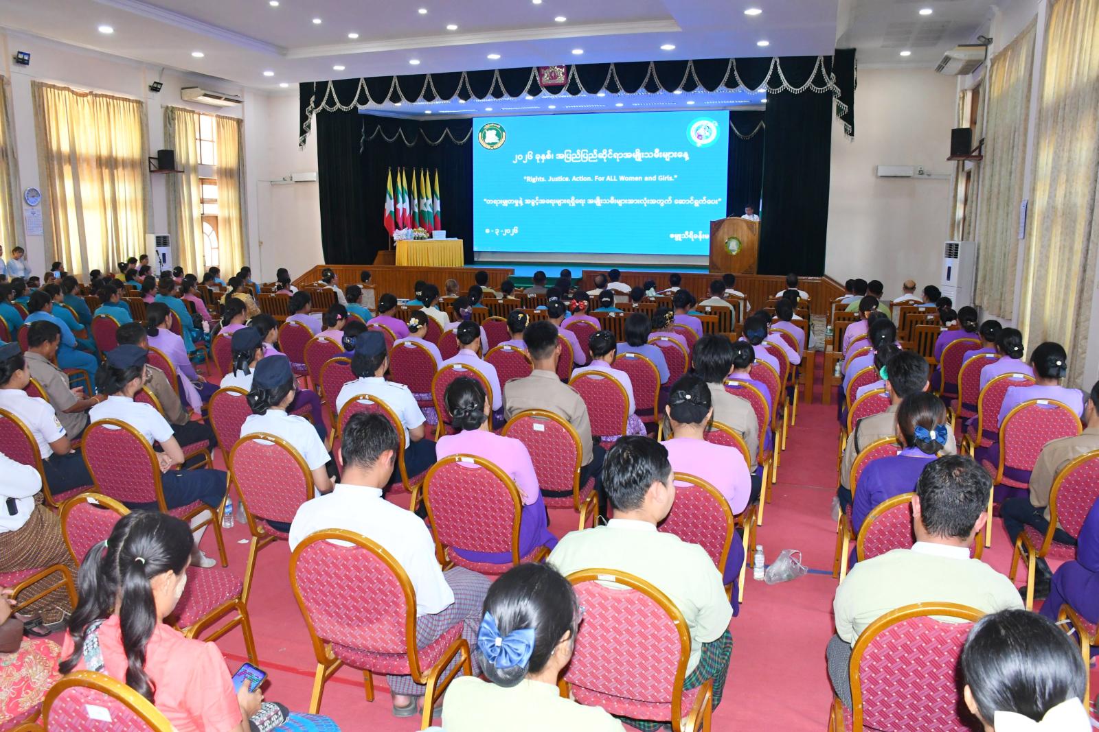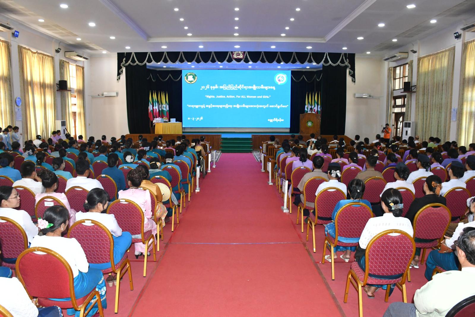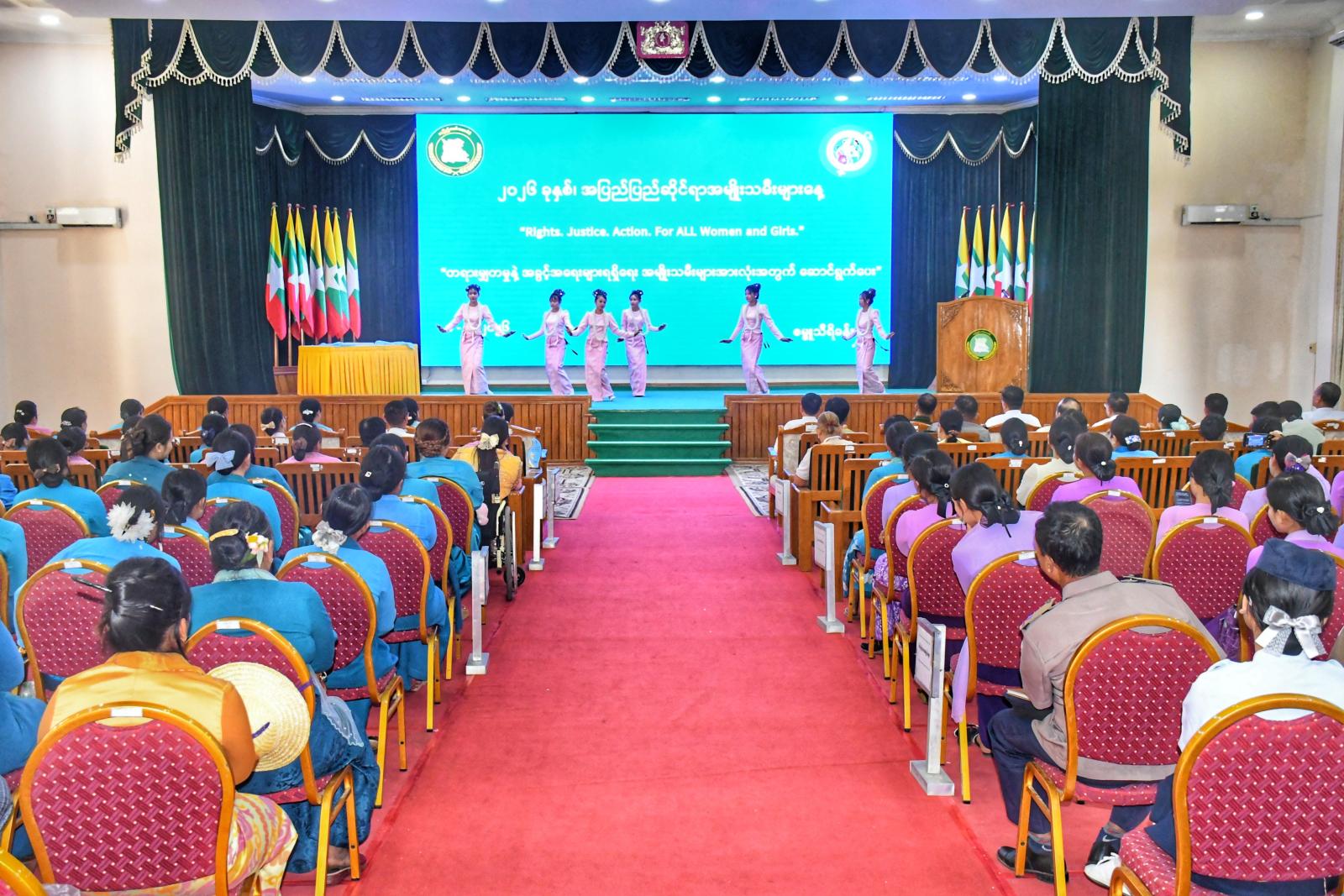 ၂၀၂၆ ခုနှစ်၊ အပြည်ပြည်ဆိုင်ရာအမျိုးသမီးများနေ့အထိမ်းအမှတ် အခမ်းအနားကို ယမန်နေ့မွန်းလွဲပိုင်းတွင် နေပြည်တော်ကောင်စီရုံး၊ ဇမ္ဗူသီရိခန်းမ၌ကျင်းပရာ အခမ်းအနားသို့ နေပြည်တော်ကောင်စီဥက္ကဋ္ဌ၊ ဦးသန်းထွန်းဦးနှင့်ဇနီး၊ နေပြည်တော်ကောင်စီအဖွဲ့ဝင်များနှင့် ၎င်းတို့၏ ဇနီးများ၊ နေပြည်တော်အမျိုးသမီးကော်မတီဝင်များ၊ ခရိုင်/မြို့နယ် အမျိုးသမီးကော်မတီဥက္ကဋ္ဌများ၊ နေပြည်တော်အမျိုးသမီးရေးရာအဖွဲ့၊ နေပြည်တော်မိခင်နှင့်ကလေးစောင့်ရှောက်မှုကြီးကြပ်ရေးအဖွဲ့၊ နေပြည်တော်အမျိုးသမီးများနှင့် ကလေးသူငယ်များဘဝမြှင့်တင်ရေးအသင်းနှင့် တာဝန်ရှိသူများ တက်ရောက်သည်။