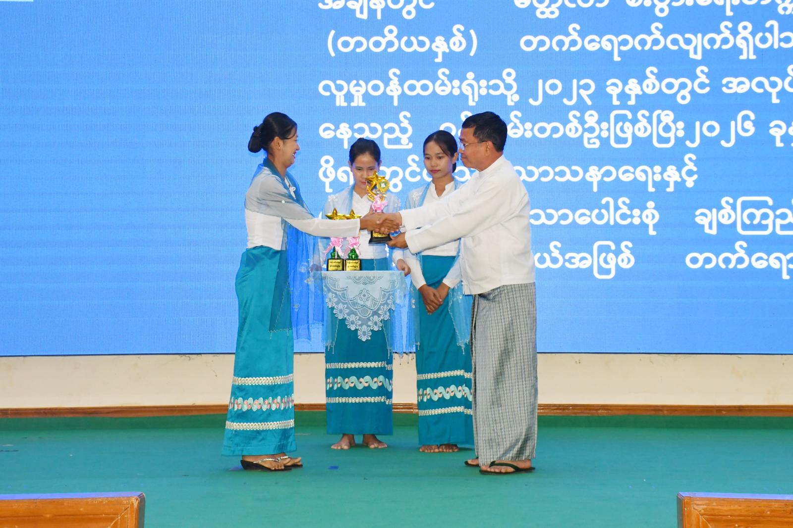 ယင်းနောက် ပျဉ်းမနားခရိုင် အမျိုးသမီးရေးရာအဖွဲ့မှ အလှကမ္ဘာမြေတေးသီချင်းနှင့် မမကိုယ်တိုင်က တေးသီချင်းများဖြင့်လည်းကောင်း၊ ဇေယျာသီရိမြို့နယ် အမျိုးသမီးရေးရာအဖွဲ့မှ ချင်းတို့ဌာနေ တေးသီချင်းဖြင့် လည်းကောင်း၊ နေပြည်တော်ကလေးပြုစုရေးဌာန သမီးငယ်လေးများက ရက်မြတ်မင်္ဂလာ တေးသီချင်းဖြင့်လည်းကောင်း အသီးသီးကပြဖျော်ဖြေတင်ဆက်ခဲ့ပြီး ဖျော်ဖြေတင်ဆက်ခဲ့သည့် အဖွဲ့များအား နေပြည်တော်ကောင်စီဝင် ဦးမြင့်စိုးက ဂုဏ်ပြုဆုများ ချီးမြှင့်ခဲ့ကြောင်း သိရသည်။