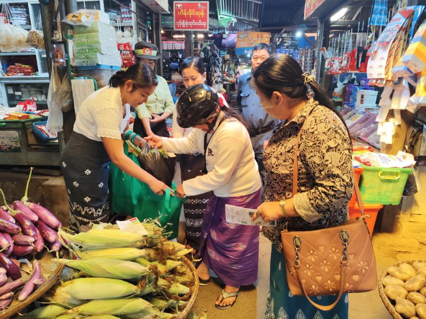 ထိုသို့ဆောင်ရွက်ရာတွင် ဈေးဝယ်လာရောက်သူများနှင့် စျေးရောင်းချသူများအား တနင်္လာနေ့တိုင်းပလတ်စတစ်အိတ်များ အသုံးပြု၍ ဈေးရောင်းဈေးဝယ်ခြင်းမပြုလုပ်ကြရန် အသိပညာပေးခြင်း၊ ဈေးဝယ်လာသူများထံမှ ပလတ်စတစ်အိတ်များနှင့် Recycle Bag များ လဲလှယ်ပေးခြင်းနှင့် လက်ကမ်းစာစောင်ဖြန့်ဝေခြင်းတို့ကို ဆောင်ရွက်ခဲ့ကြောင်း သိရသည်။
