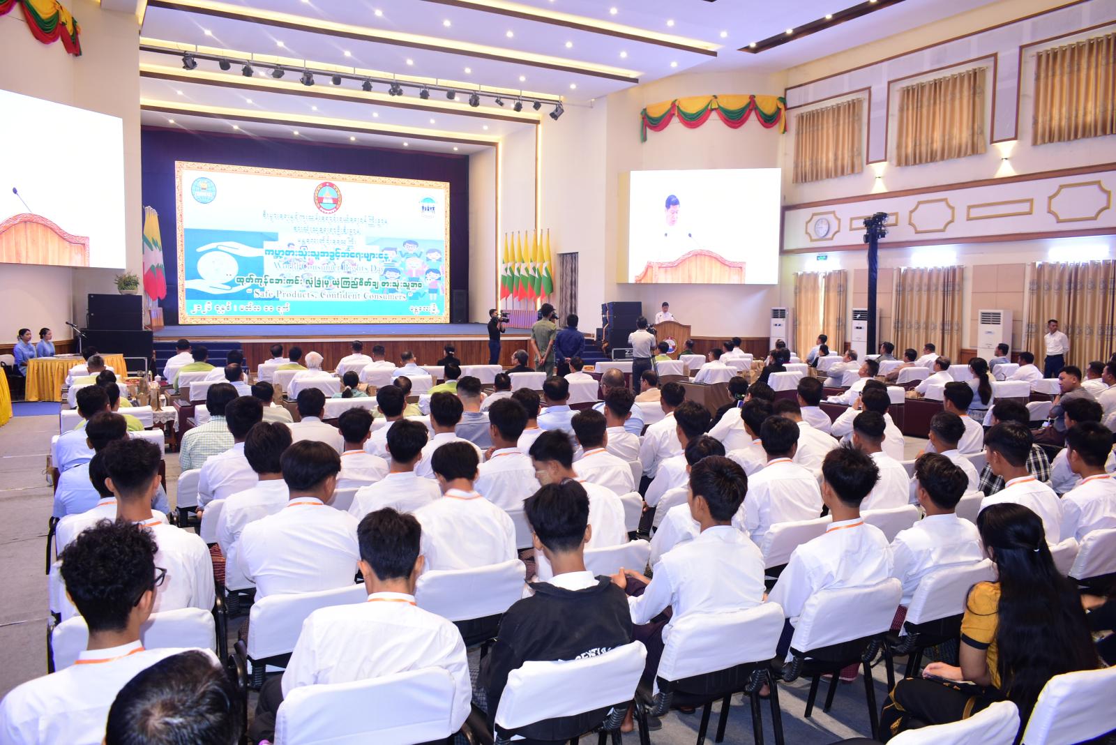 စီးပွားရေးနှင့်ကူးသန်းရောင်းဝယ်ရေးဝန်ကြီးဌာန၊ မန္တလေးတိုင်းဒေသကြီး စားသုံးသူရေးရာဦးစီးဌာနမှ ကြီးမှူးကျင်းပသော ကမ္ဘာ့စားသုံးသူအခွင့်အရေးများနေ့အခမ်းအနားကို မန္တလေးတိုင်းဒေသကြီး၊ ချမ်းအေးသာစံမြို့နယ်၊ မြို့တော်ခန်းမ၌ ယနေ့နံနက်ပိုင်းက ကျင်းပဆောင်ရွက်ခဲ့ရာ မန္တလေးတိုင်းဒေသကြီးအစိုးရအဖွဲ့ ဝန်ကြီးချုပ်ဦးမျိုးအောင်နှင့် တိုင်းဒေသကြီးအစိုးရအဖွဲ့ဝန်ကြီးများ တက်ရောက်ခဲ့သည်။