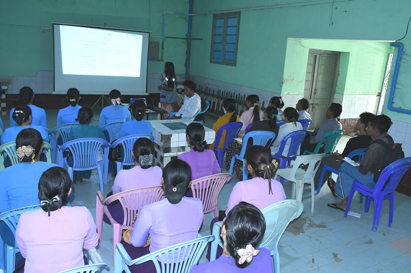 သင်တန်းတွင် မြို့နယ်ကျန်းမာရေးအရာရှိ ဦးကျော်စွာထွန်း၊ ကျန်းမာရေးမှူးအဆင့်(၁) ဦးသာဆန်း၊ လက်ထောက်ညွှန်ကြားရေးမှူး ဒေါ်နှင်းအိန္ဒာထက်နှင့် သင်တန်းနည်းပြ ၁၂ ဦးတို့က လူထုကျန်းမာရေး လုပ်သားဆောင်ရွက်ရမည့်လုပ်ငန်းများနှင့်တာဝန်ဝတ္တရာများ၊ လုပ်နည်းလုပ်ဟန်များ၊ ကျန်းမာရေး သဘောတရားနှင့်အခြေခံမူ(၅)ချက်၊ ကျေးလက်ကျန်းမာရေးဌာန/ဌာနခွဲများ၏လုပ်ငန်းများ၊ ကူးစက် ရောဂါ၏ မဓိပ္ပာယ်၊ကူးစက်ပြန့်ပွားပုံကွင်းဆက်များ၊ ကူးစက်ရောဂါဖြစ်လာလျှင် ပြုလုပ်ရမည့် အချက်အလက်များနှင့်ချက်ချင်းဆောင်ရွက်ရန် နည်းလမ်းများ၊ ဆေးလိပ်နှင့်ဆေးရွက်ကြီး သောက်သုံးမှုကြောင့် ဖြစ်သောရောဂါများ၊ ကလိုရင်းဆေးခတ်းခြင်းအကြောင်း၊ အမှိုက် သရိုက် စနစ်တကျစွန့်ပစ်ရန်နည်းလမ်းများ၊ ကျန်းမာရေးအသိပညာပေးနိုင်ရန်အတွက် လူထုကျန်းမာရေး လုပ်သားများတွင် ရှိသင့်သည့် ကျွမ်းကျင်မှုများ၊ ပညာပေးနည်းလမ်းများ၊ ပညာပေး အထောက်အကူပစ္စည်းများ၊ လူထုပူးပေါင်းပါဝင်မှုကို ရယူဆောင်ရွက်ခြင်း၊ လူထု ကိုယ်တိုင် ကျန်းမာရေးပြသနာများကို လေ့လာဖော်ထုတ်နည်း၊ ပြသနာများကို ဖြေရှင်းနည်း စသည့် ကျန်းမာရေးစောင့်ရှောက်မှုပညာများ သင်ကြားပို့ချလျက်ရှိကြောင်း သိရသည်။