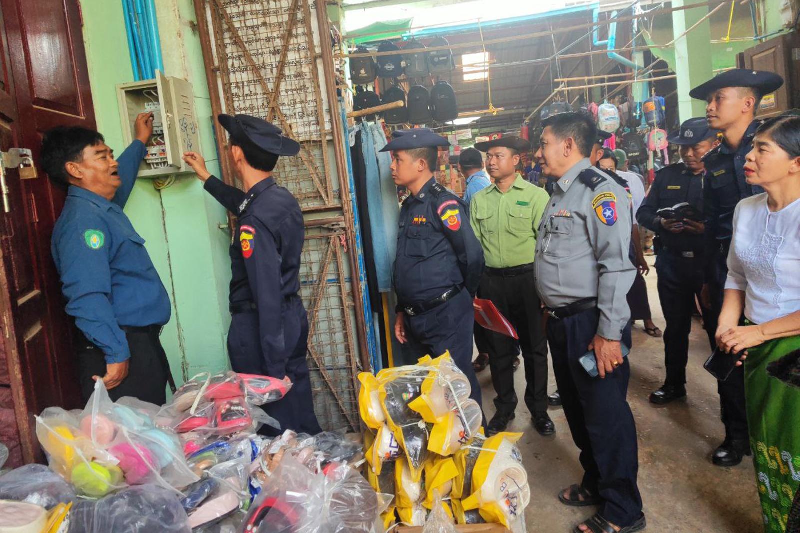 မန္တလေးတိုင်းဒေသကြီး မီးသတ်ဦးစီးမှူး ဦးဇော်ဝင်းထွန်း၊ ရမည်းသင်းခရိုင်မီးသတ်ဦးစီးမှူး ဦးအောင်ခင်ဆင့်နှင့်အဖွဲ့သည် ပျော်ဘွယ်မြို့ စည်ပင်သာယာဈေးအတွင်း မီးဘေးအန္တရာယ်ကာကွယ်ရေးအတွက် ဆောင်ရွက်ထားမှုအခြေအနေများကို မတ် ၉ ရက် ညနေ ၃ နာရီက ကြည့်ရှု စစ်ဆေးကာ 191 Application အသုံးပြုနိုင်ရေး၊ ရေသိုလှောင်ကန်ထားရှိမှု၊ မီးငြိမ်းသတ်ရေးပစ္စည်းများ အသင့်ထားရှိမှုနှင့် လိုအပ်ချက်များကို အကြံပြုခြင်းများ ဆောင်ရွက်ခဲ့ကြောင်းသိရသည်။