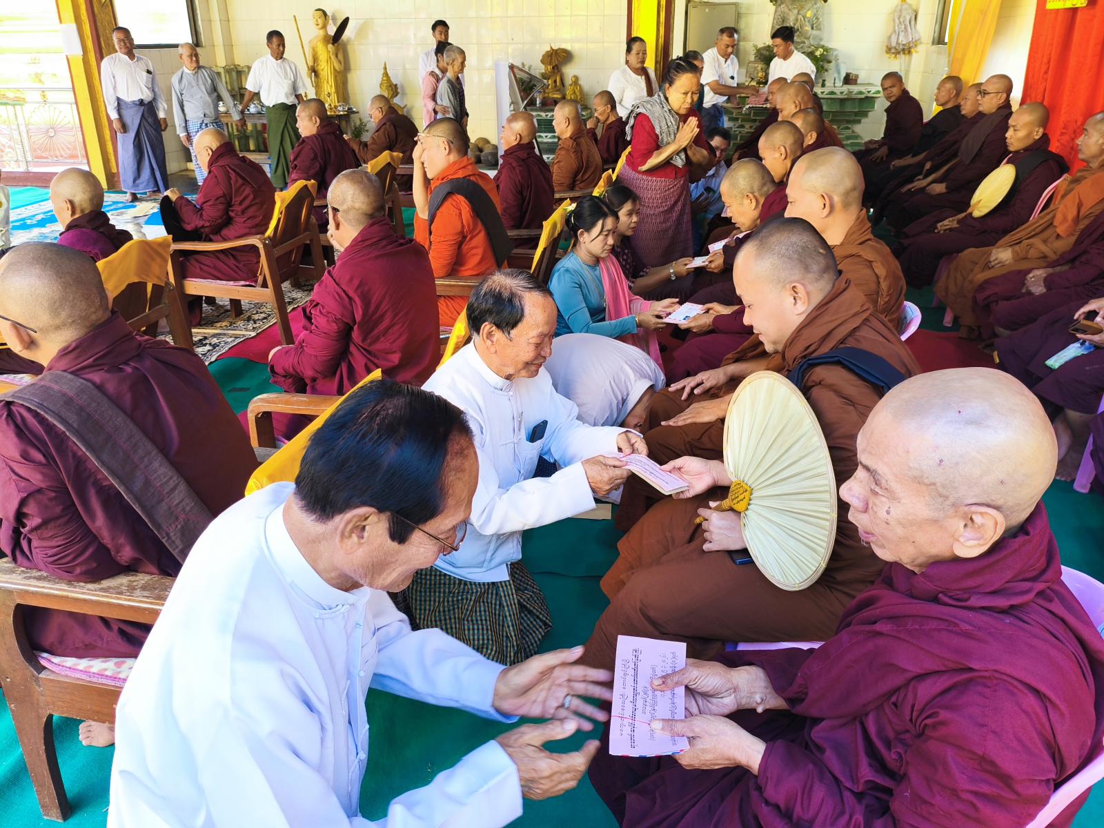 ဆက်လက်၍ မကွေးတိုင်းဒေသကြီး သံဃာ့ဝန်ဆောင်ဆရာတော်၊ ကန်တော်မင်းကျောင်းတိုက်ကြီး၏ ပဓာနနာယက၊ အဂ္ဂမဟာပဏ္ဍိတ၊ ဂန္ထဝါစကပဏ္ဍိတ ဘဒ္ဒန္တ သုစိတ္တ ဆရာတော်အရှင်သူမြတ်ထံမှ အနုမောဒနာတရားနာယူ၍ လှူဒါန်းမှုအစုစုတို့အတွက် ရေစက်သွန်ချအမျှတမ်းပေးဝေခဲ့ပြီး တောရစွယ်တော်ဆရာတော်အရှင်သူမြတ်က နတ်၊ ဗြဟ္မာများအား ပြန်လည်ပို့ဆောင်ခြင်း ရွတ်ဖတ်ပူဇော်ခဲ့ကာ “ဗုဒ္ဓသာသနံ စိရံတိဋ္ဌတု” သုံးကြိမ်ရွတ်ဆို ဘုရားကန်တော့၍ အခမ်းအနားအား ရုပ်သိမ်းခဲ့ကြောင်း သိရသည်။