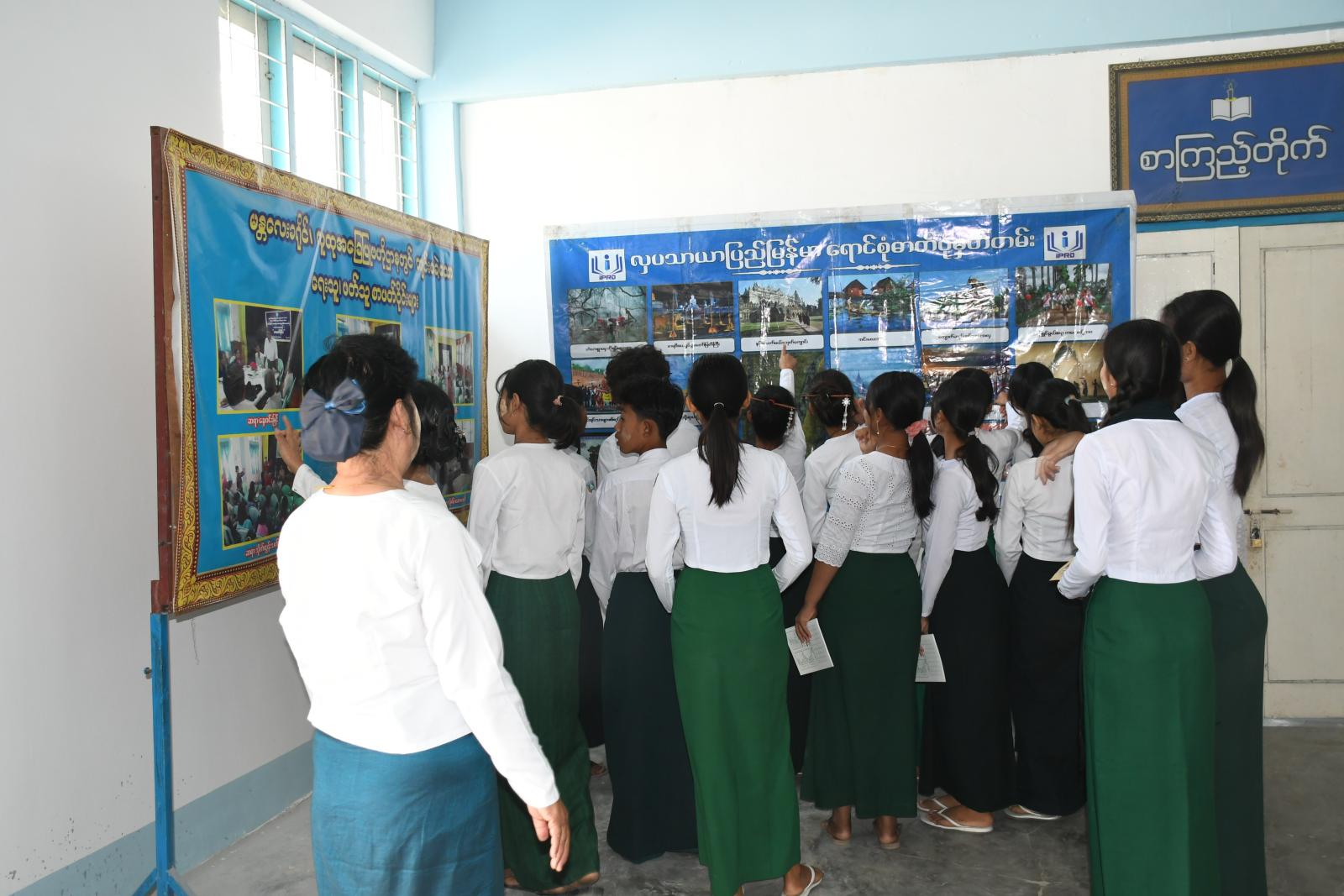 ယင်းနောက် ခရိုင်ပြန်ကြားရေးနှင့် ပြည်သူ့ဆက်ဆံရေးဦးစီးဌာနမှ ခင်းကျင်းပြသထားသော သုတ၊ ရသစာအုပ်စာစာင်များ၊ အသိပညာပေး နံရံကပ်စာစောင်များအား သင်တန်းဆင်းပွဲတက်ရောက်လာသော ကျောင်းသား/ကျောင်းသူများက စိတ်ဝင်တစားကြည့်ရှုလေ့လာခဲ့ကြောင်းသိရသည်။